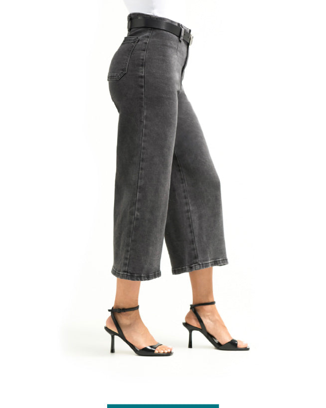 Jean culotte medio tiro alto y fondo entero para mujerJean culotte medio tiro alto y fondo entero para mujer