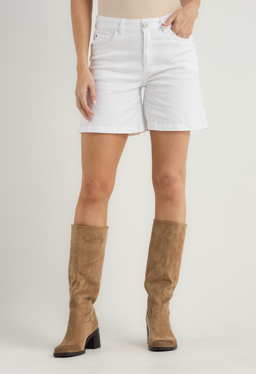 Bermuda blanca tiro alto para mujer