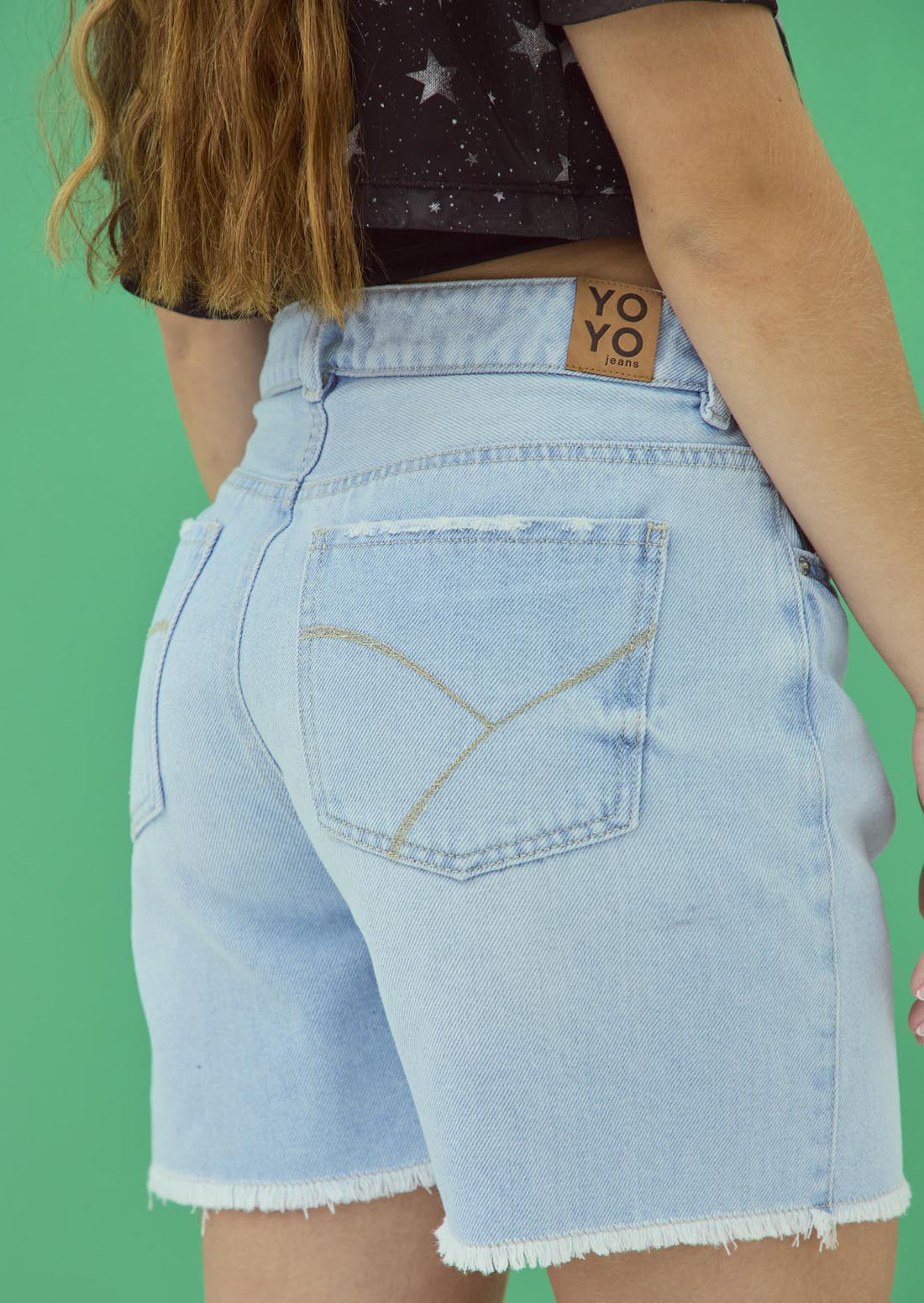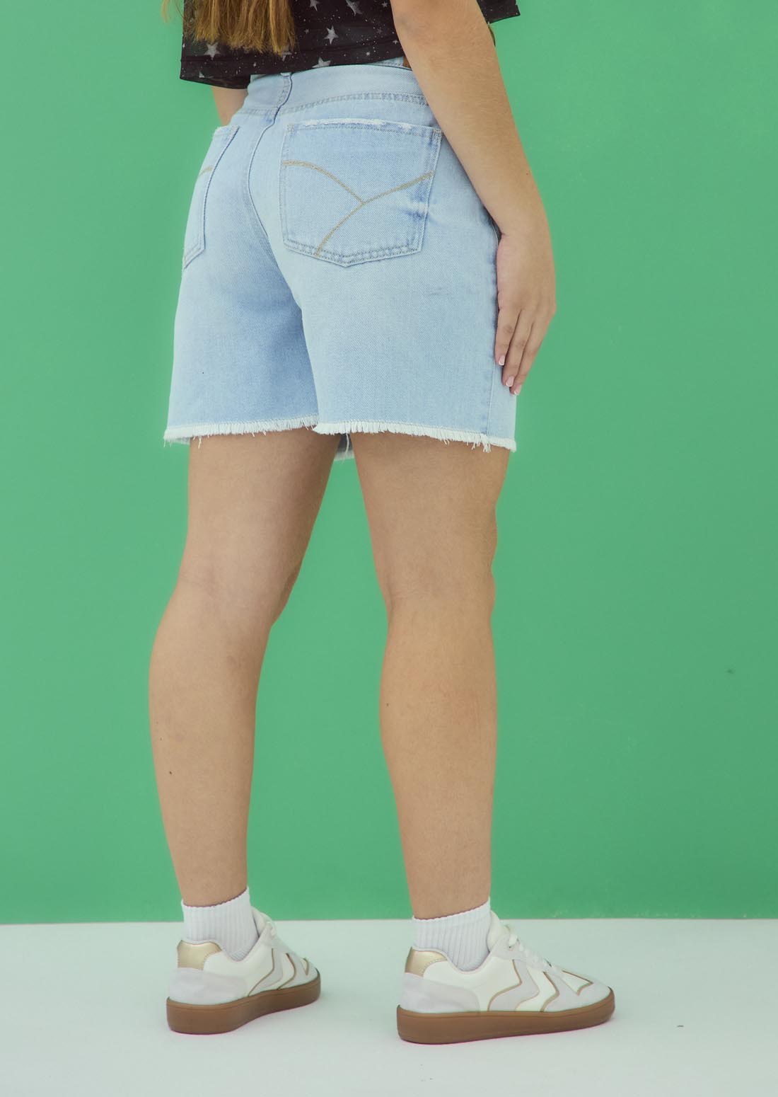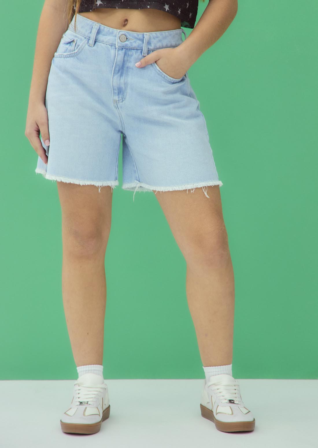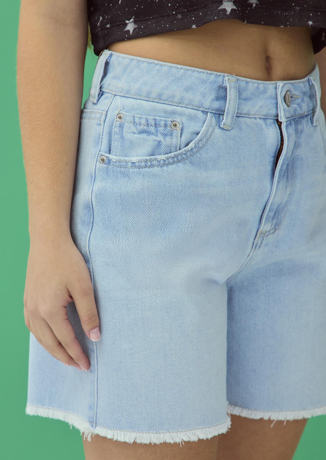 Bermuda tiro alto, lavado claro, en denim y fondo entero para jóvenes.