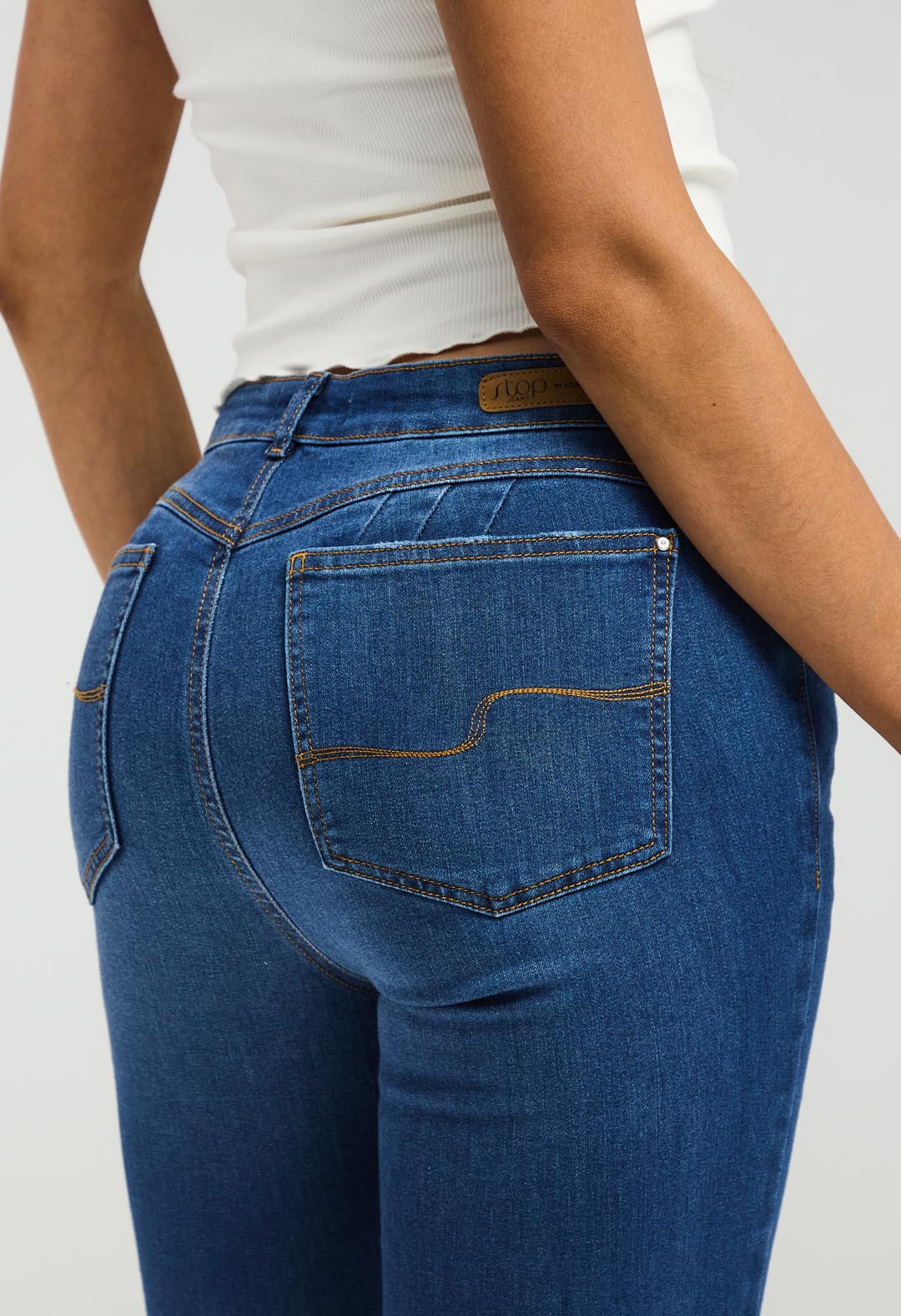 - Toque moderno con el sello Stop Jeans.