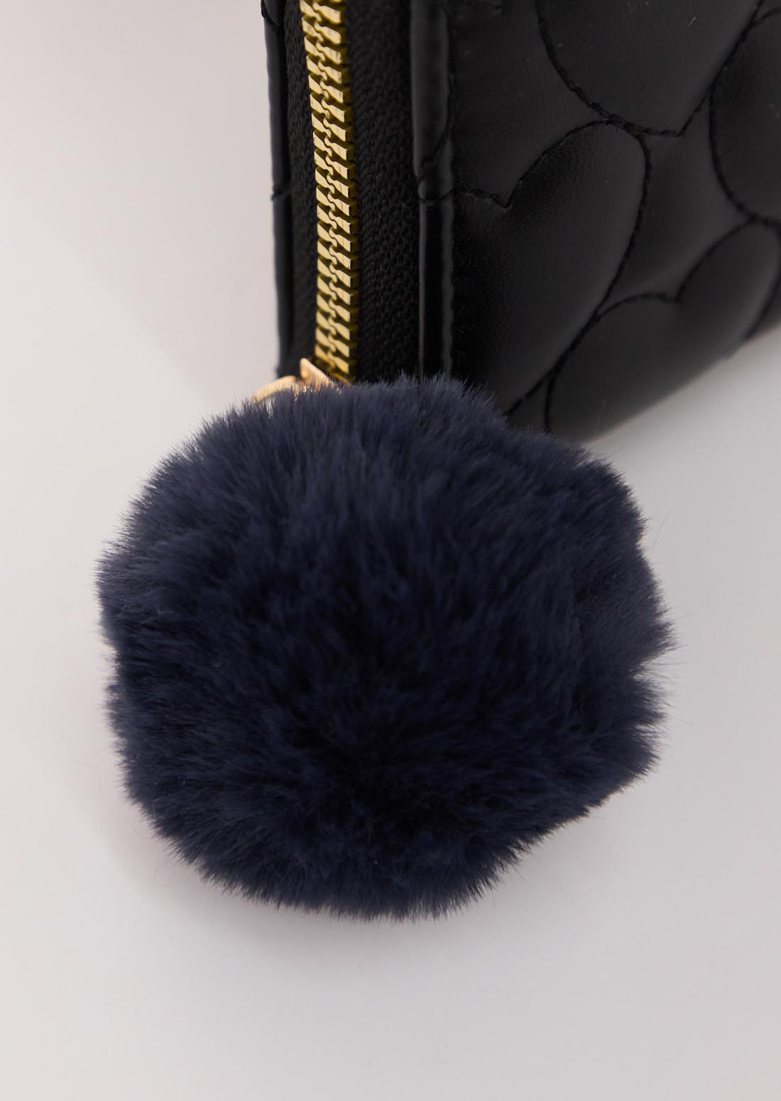 Billetera negra con charm de pompón