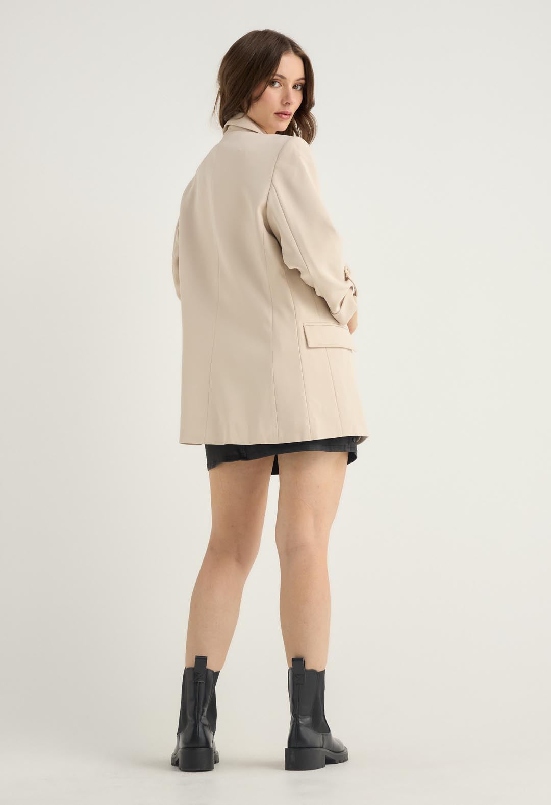 Blazer arena con tapas en frente para mujer