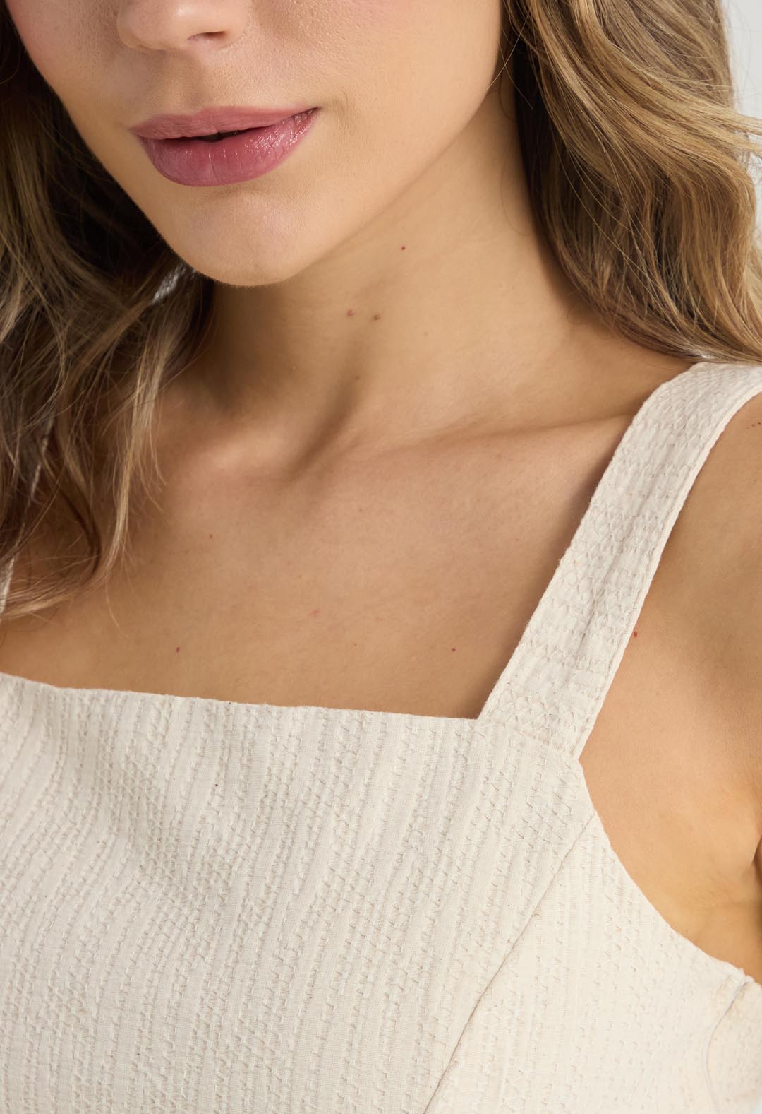 Blusa de tiras, color arena, con botones en espalda para mujeres.
