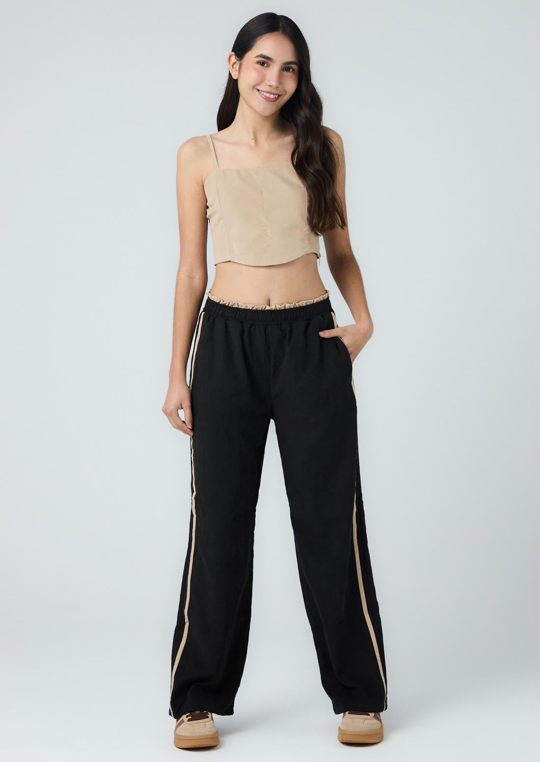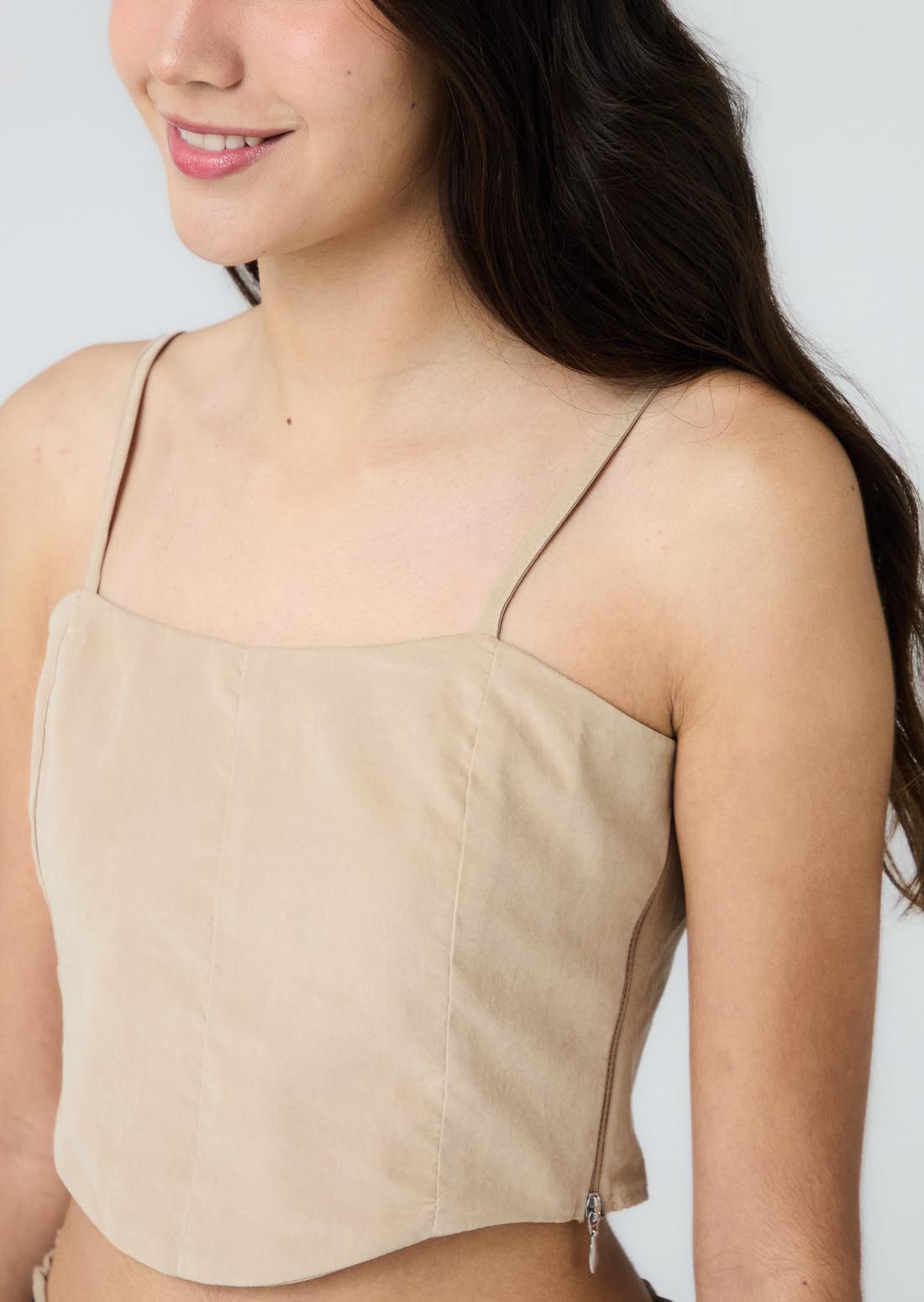 Blusa de tiras, color arena, con cortes y fondo entero para jóvenes.