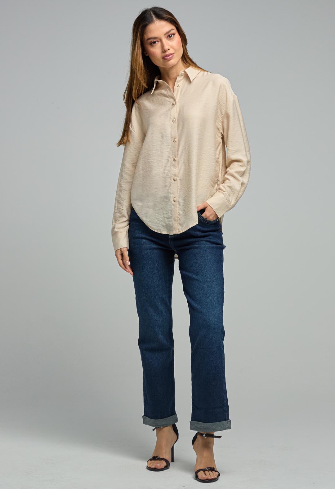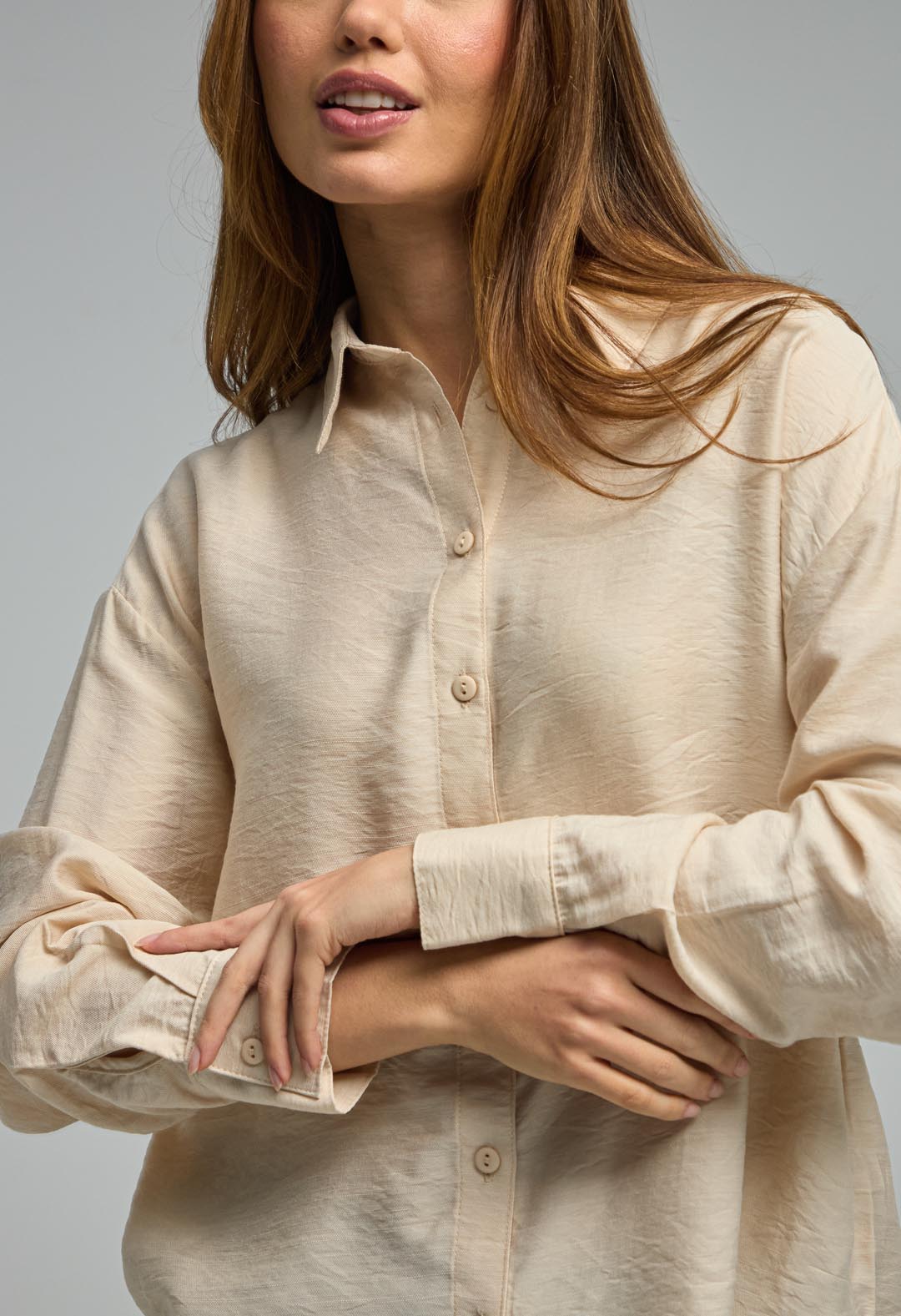Blusa manga larga, color arena y fondo entero para mujeres.