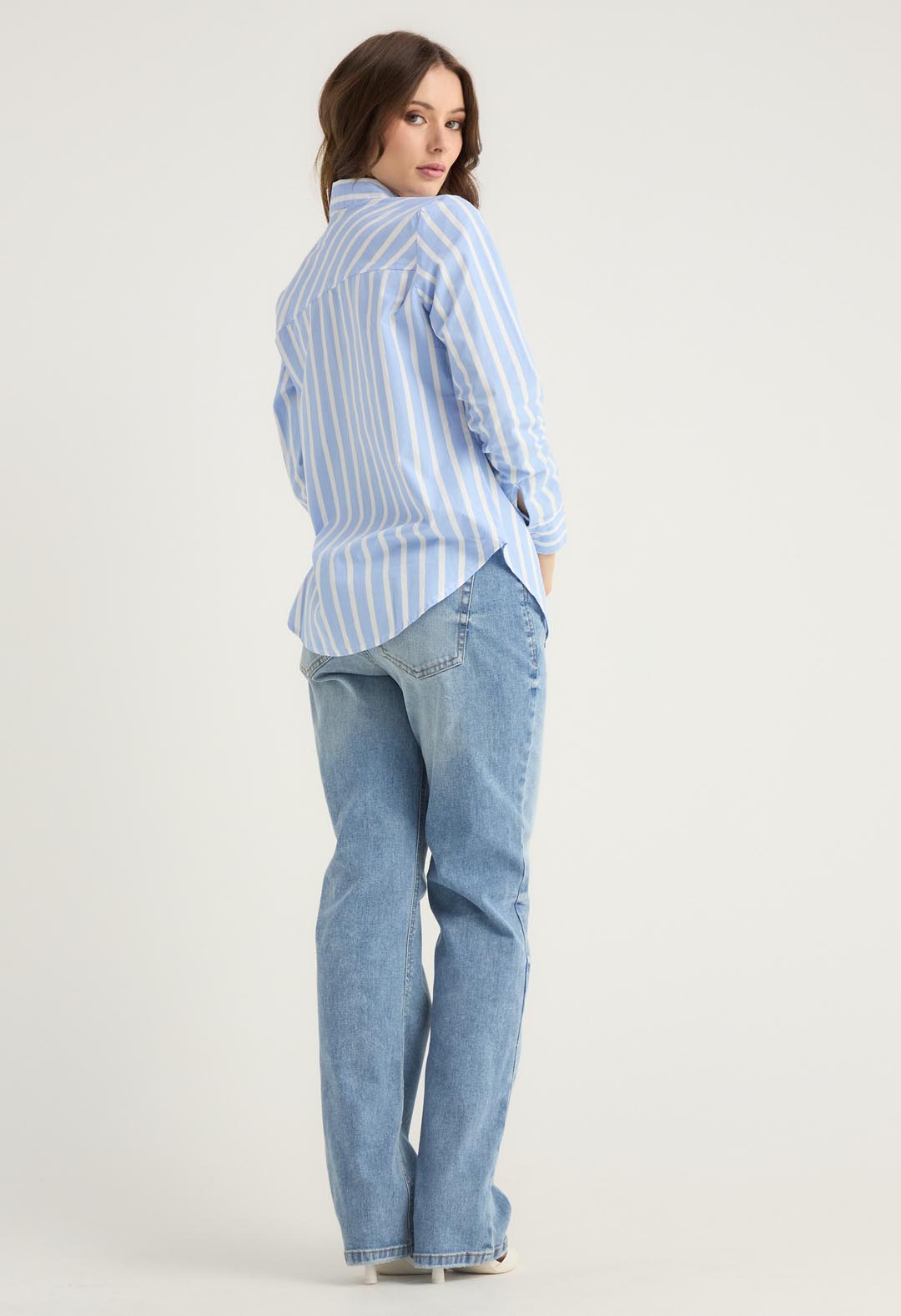 Blusa azul a rayas para mujeres.