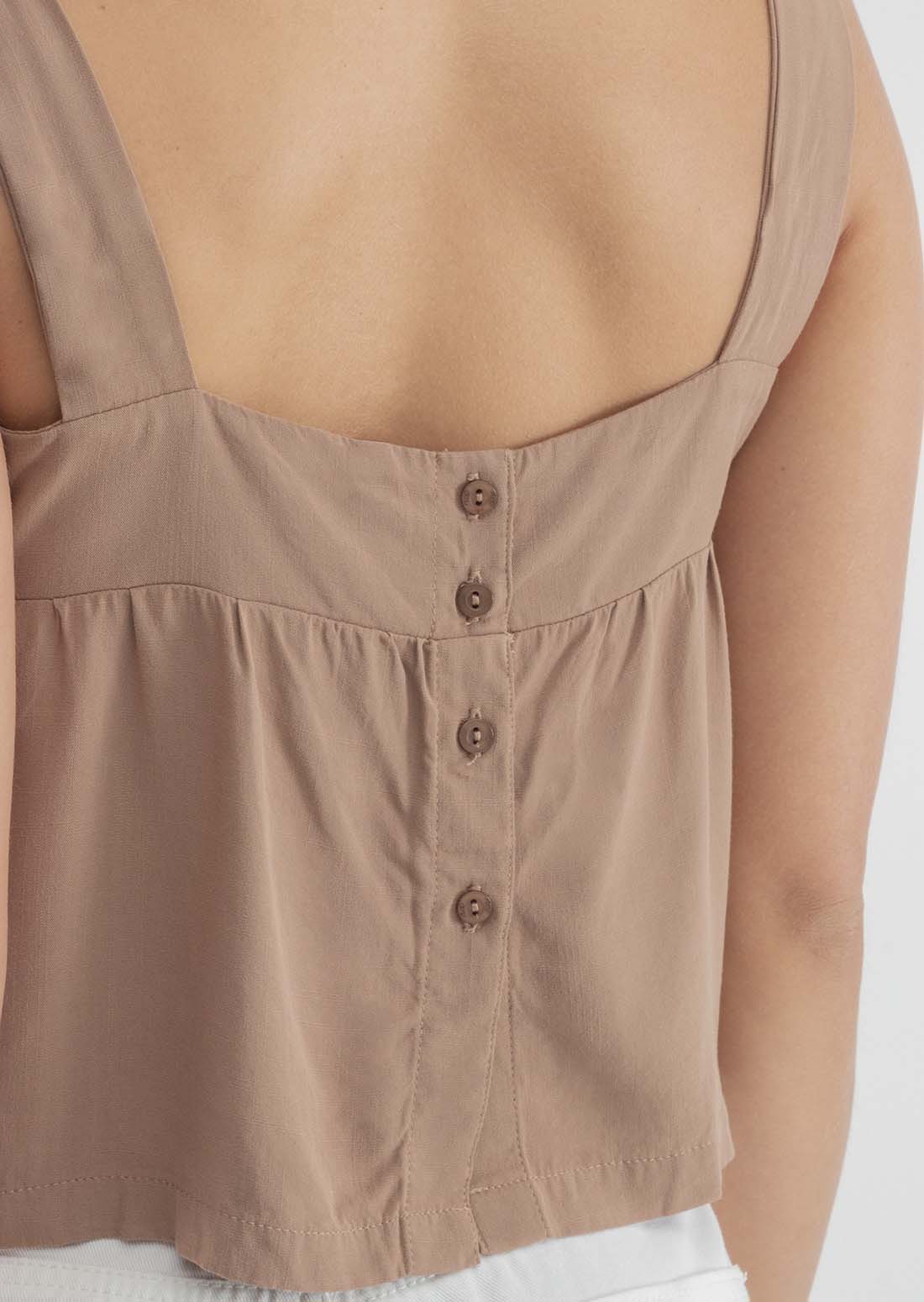 Blusa manga corta escote cuadrado con botones, largo especial.