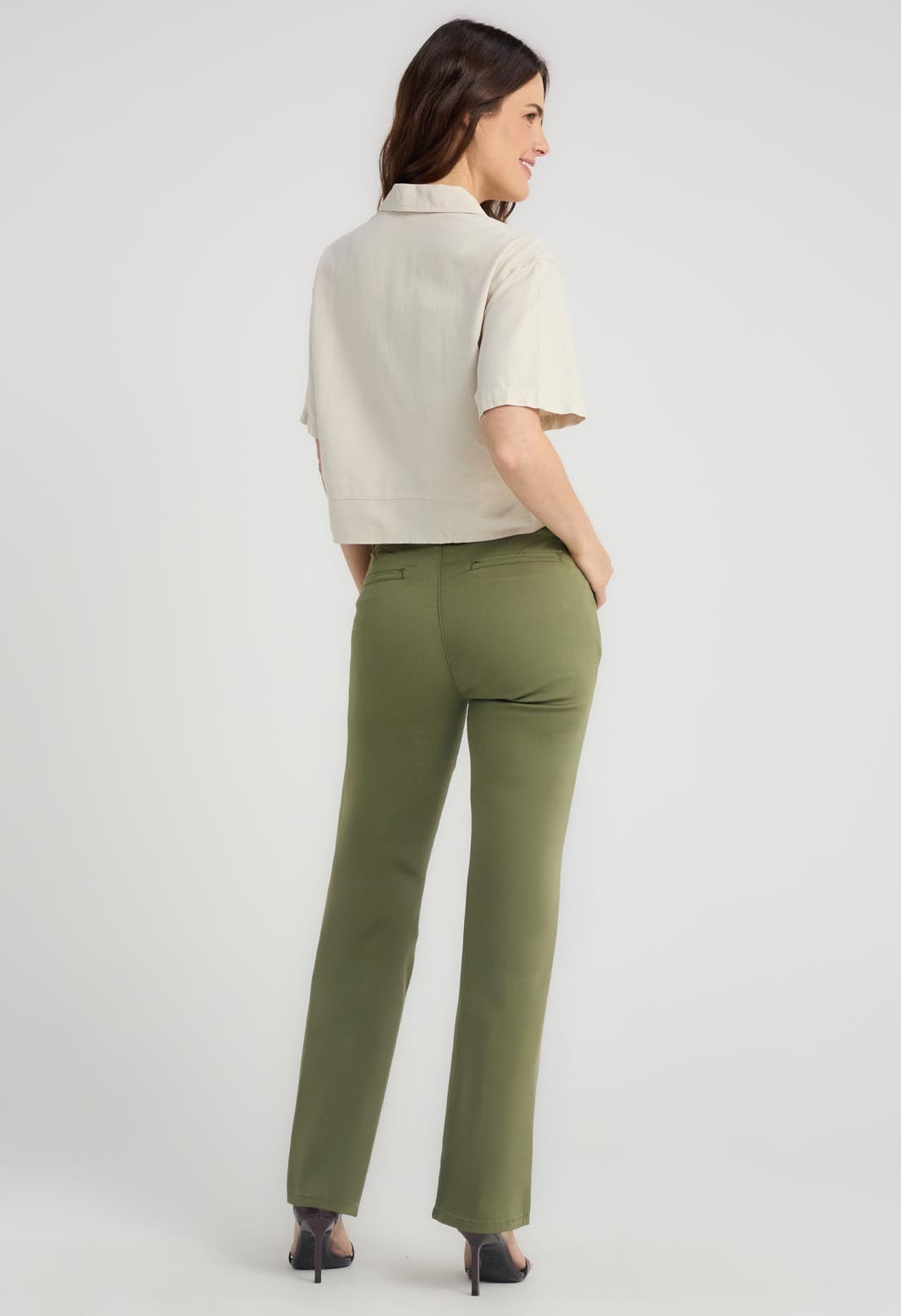 Blusa manga corta, color marfil, entorchado en frente y largo crop para mujeres.