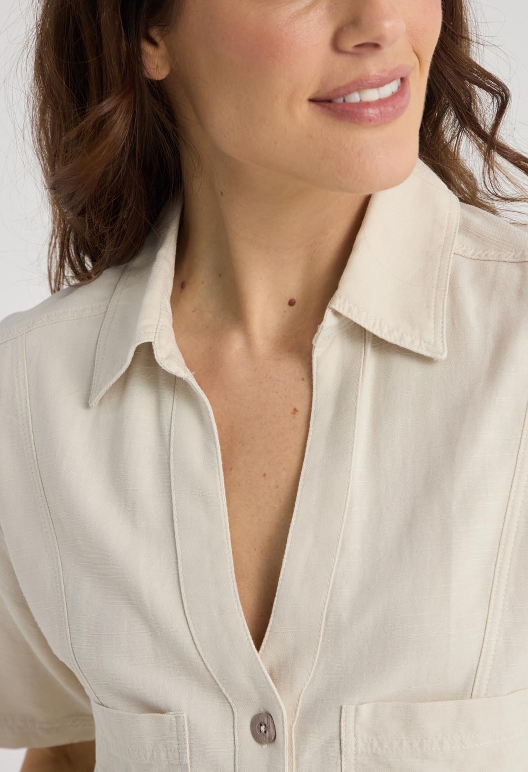 Blusa marfil con entorchado en frente para mujeres
