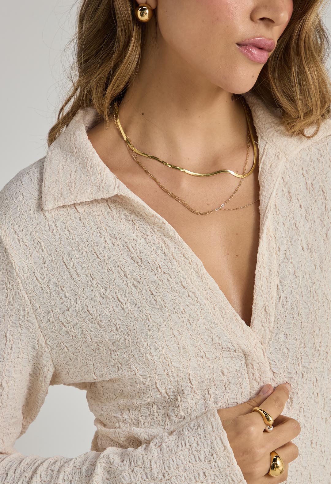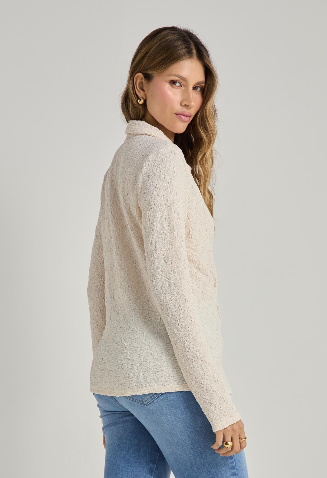 Blusa marfil cuello en tela con efecto para mujer