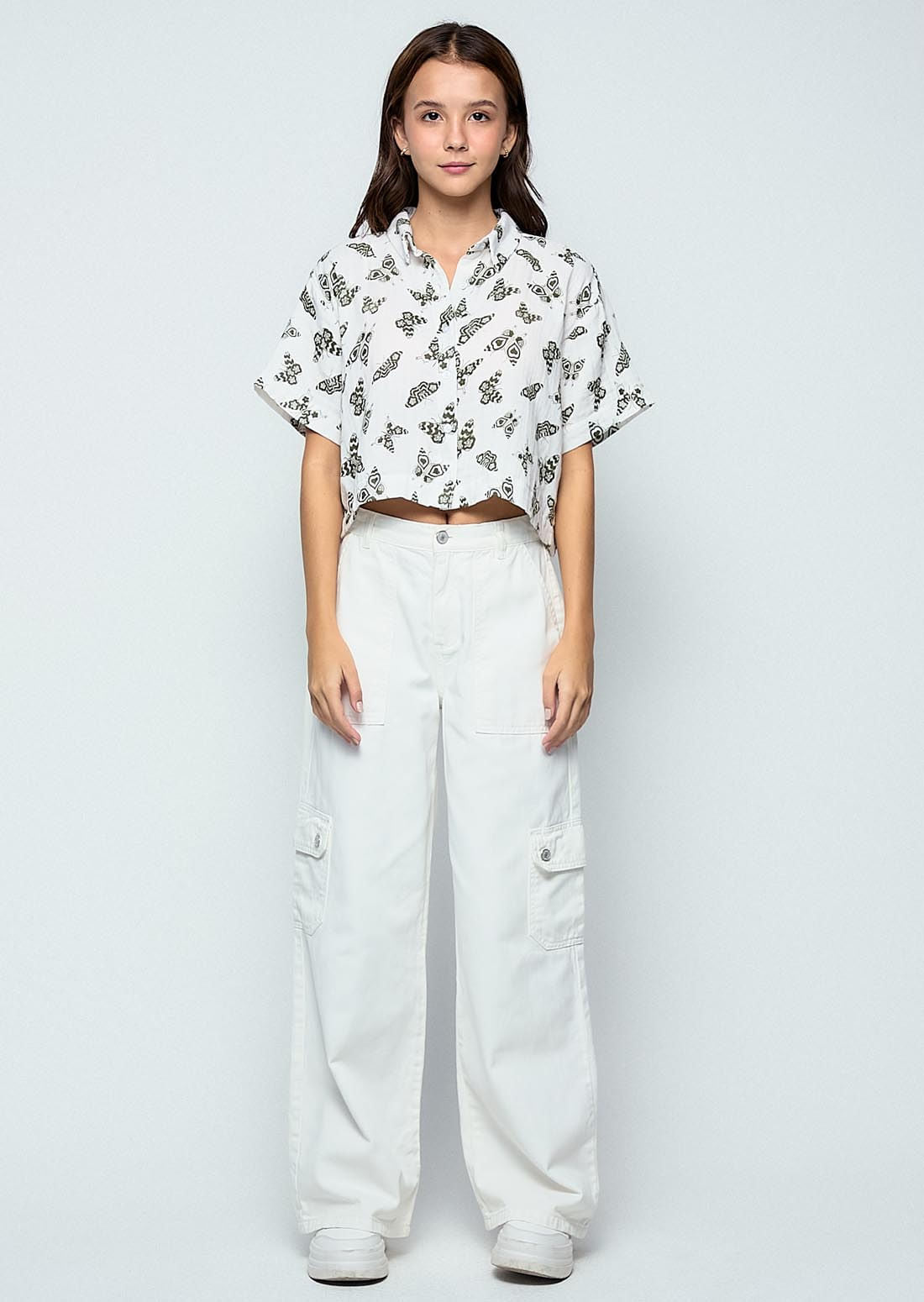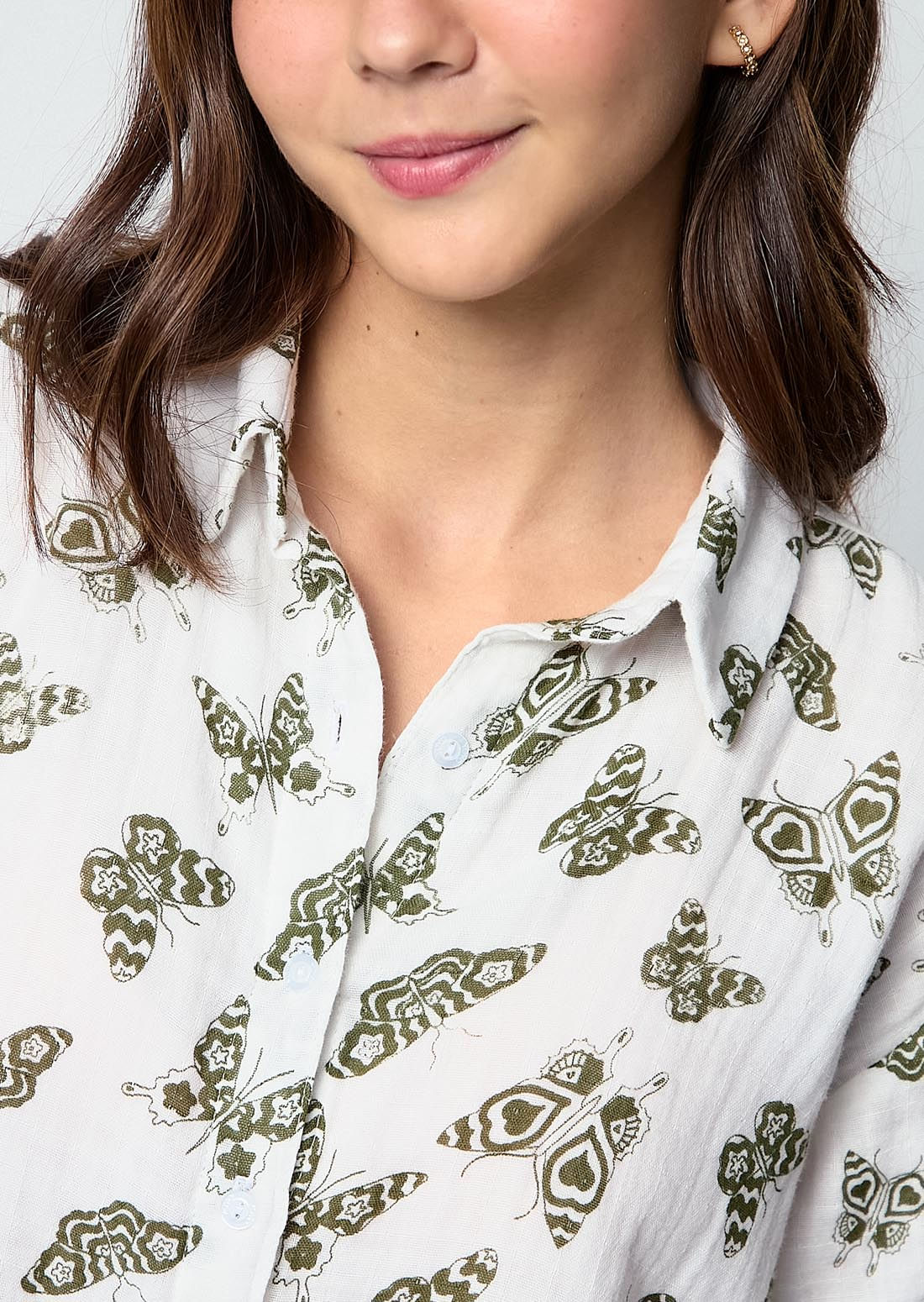 Blusa marfil full print de mariposas para jóvenes