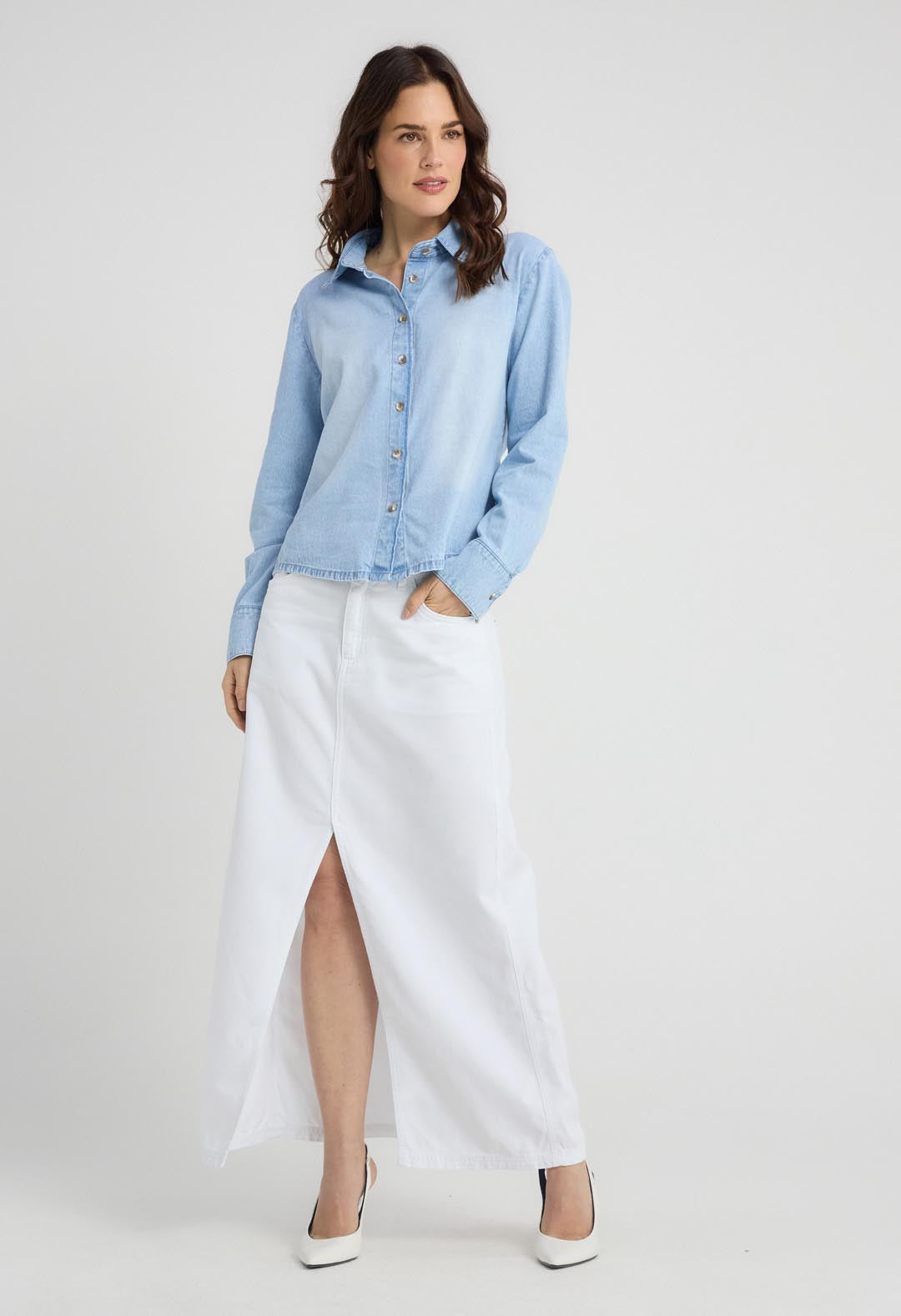Blusa medio en denim para mujeres