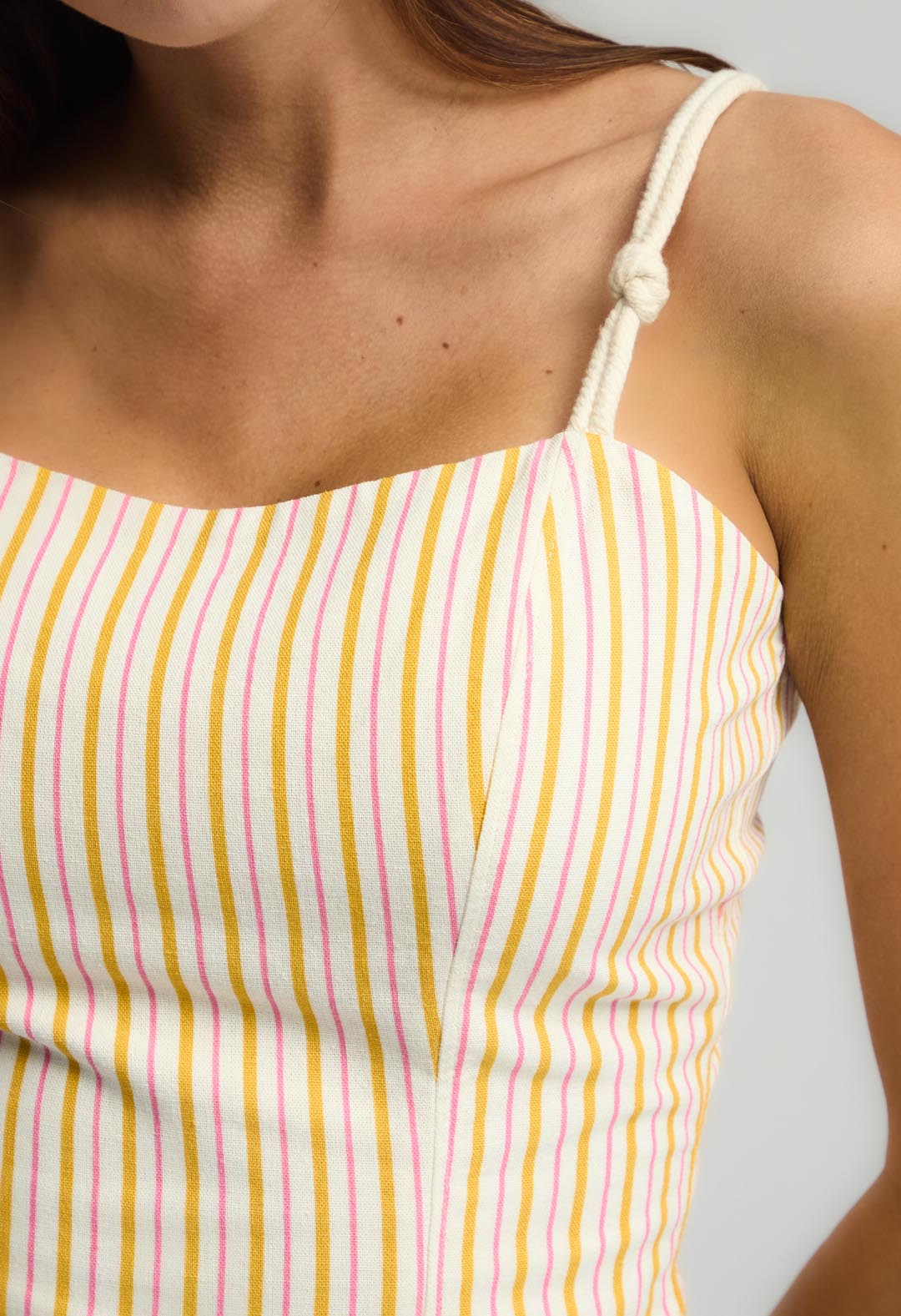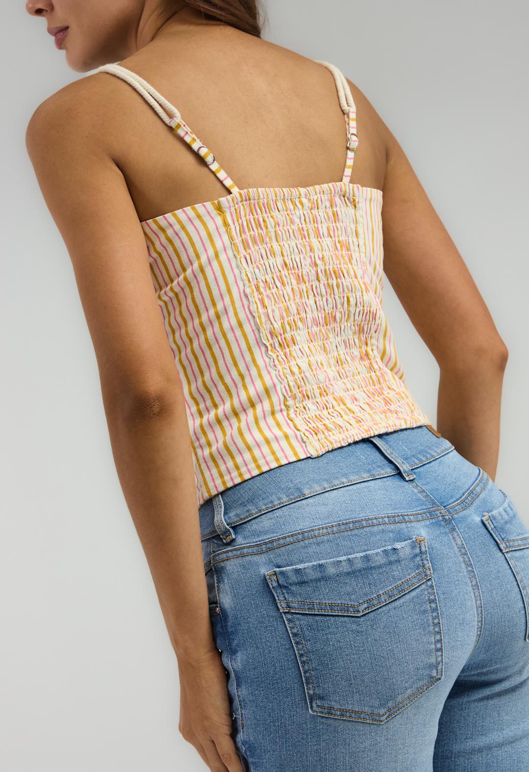 Blusa de tiras, color mostaza y full print para mujeres.