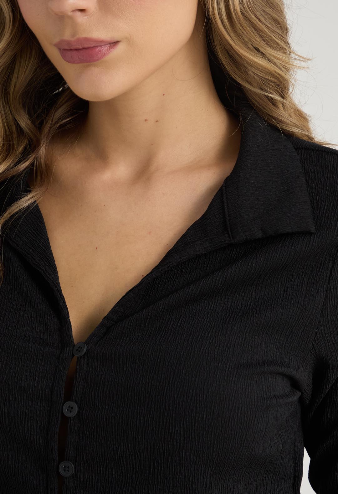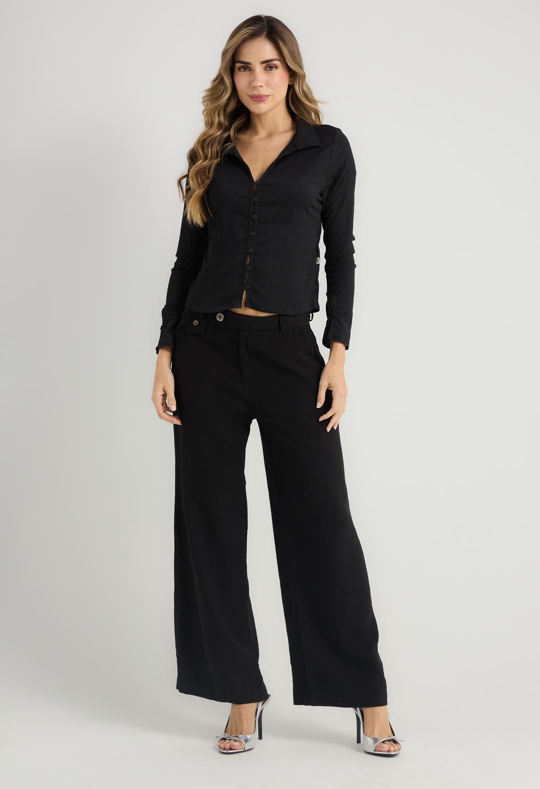 Blusa manga larga, color negro y con botones en frente para mujer.