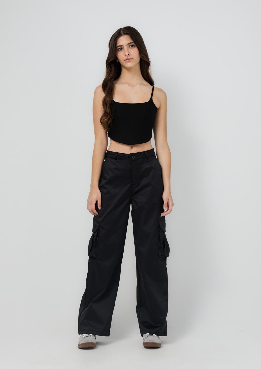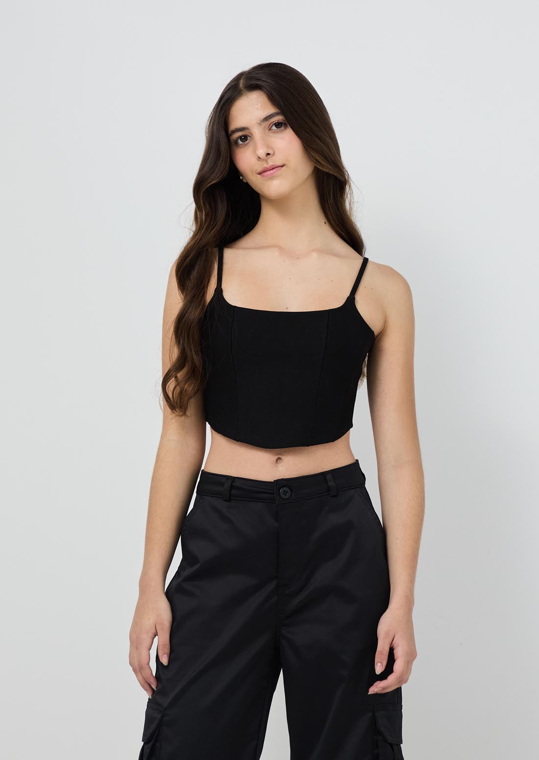 Blusa de tiras, color negro, con cortes en frente y lace up en espalda para jóvenes.