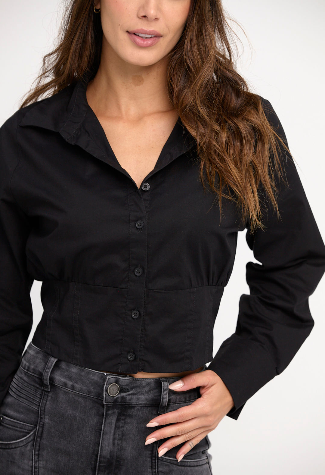 - Manga larga perfecta para climas frescos o para looks más formales.