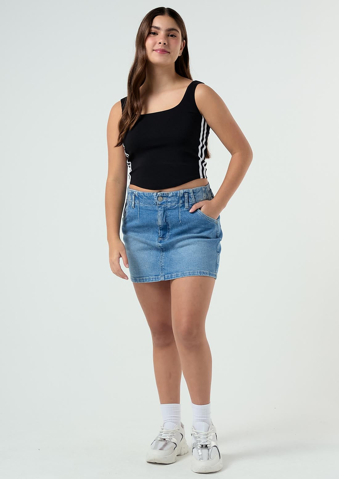 Blusa negra con cierre en frente para adolescentes