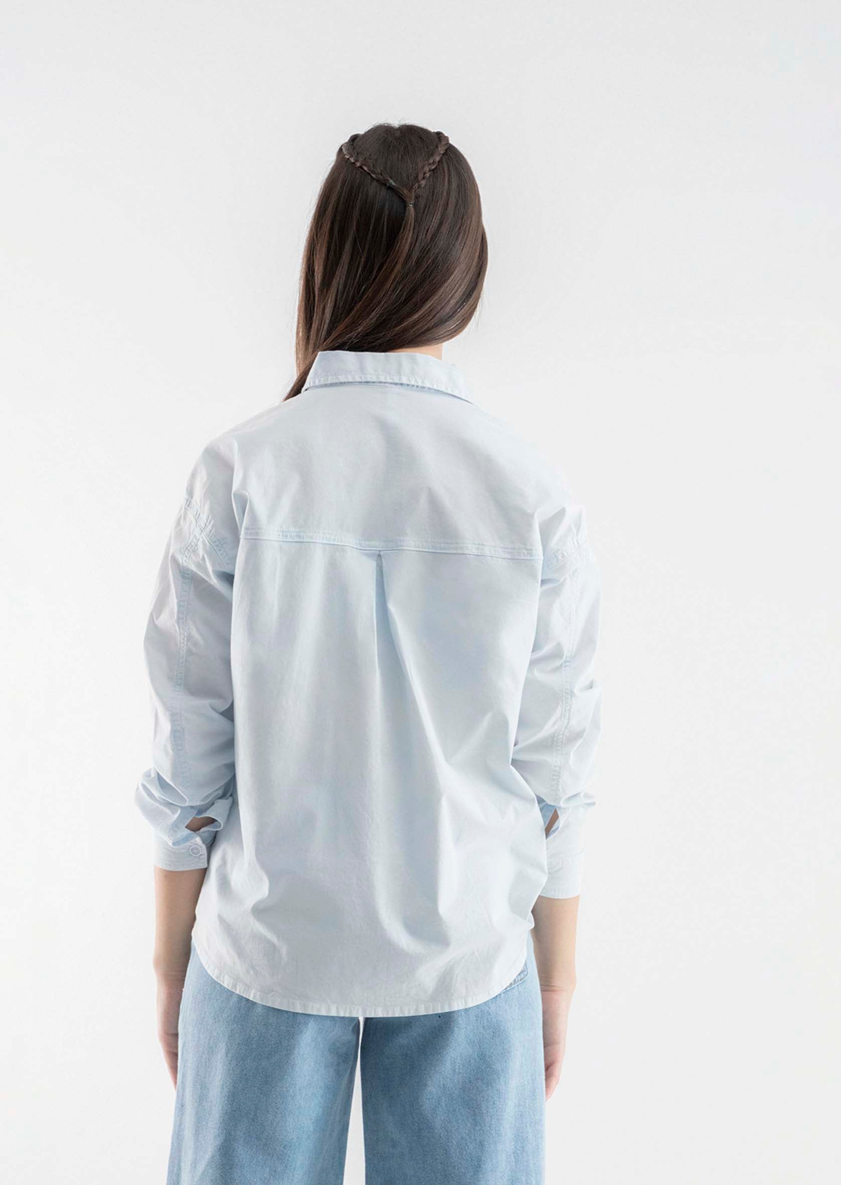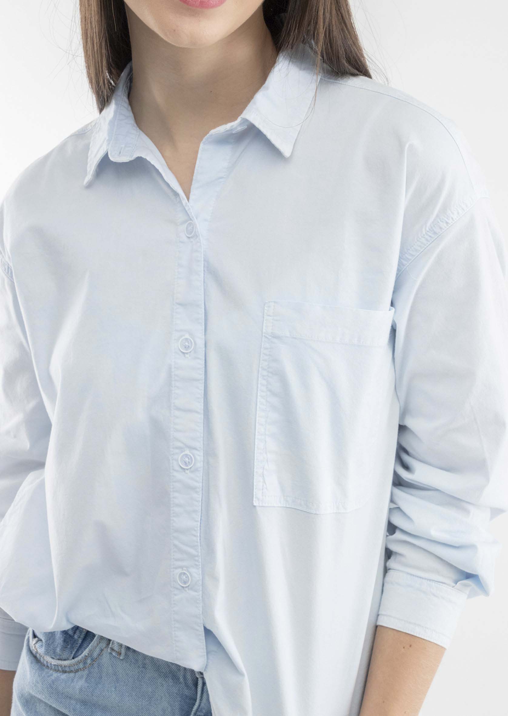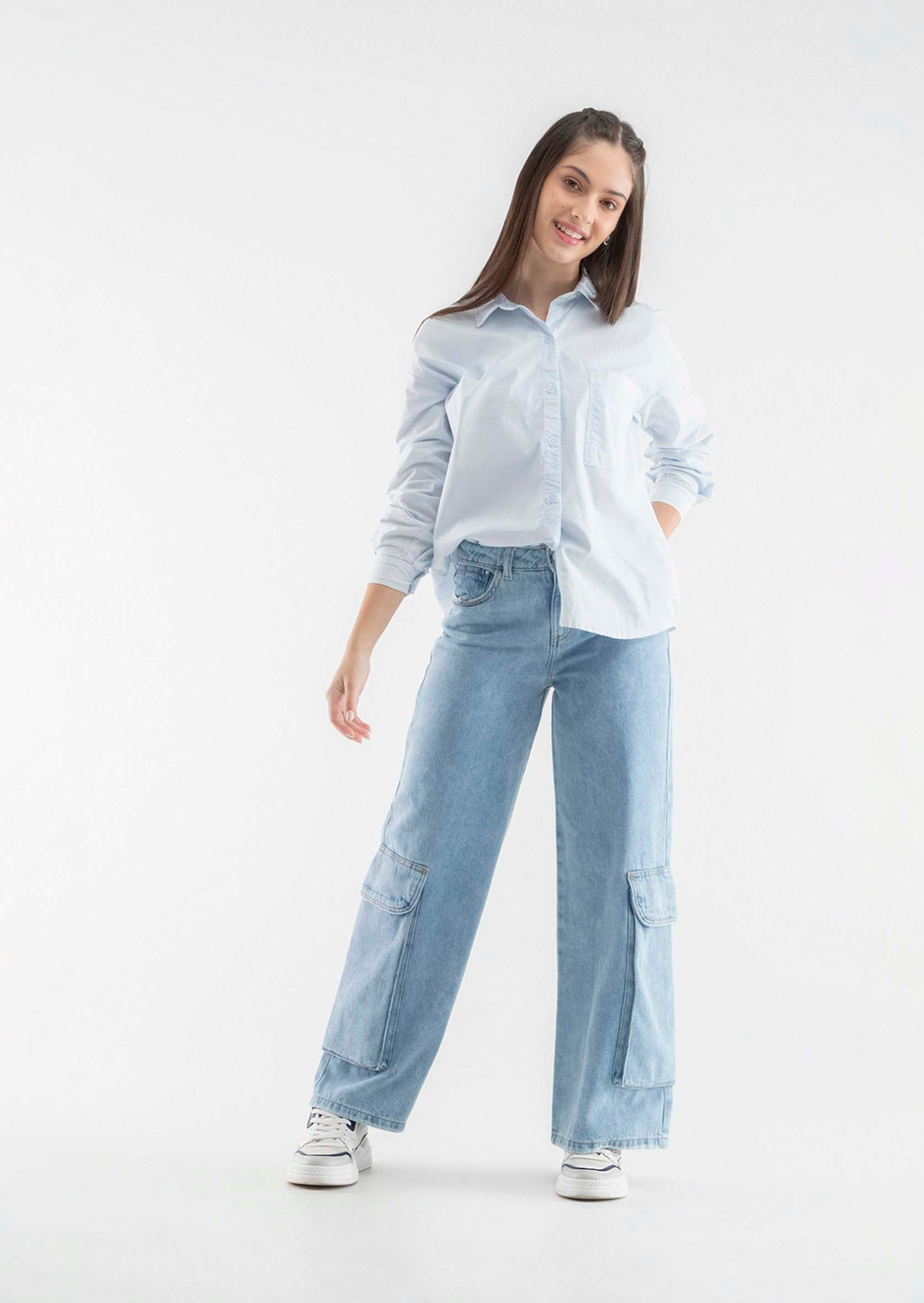 Blusa oversize, manga larga, color azul claro y fondo entero para adolescentes.