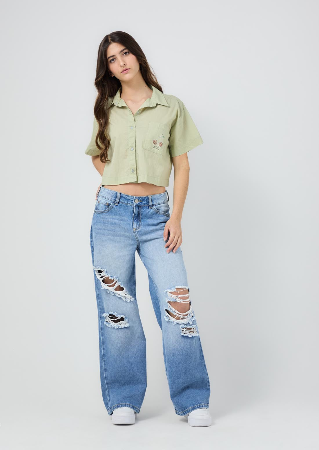 Blusa pistacho con aplique en bolsillo para jóvenes