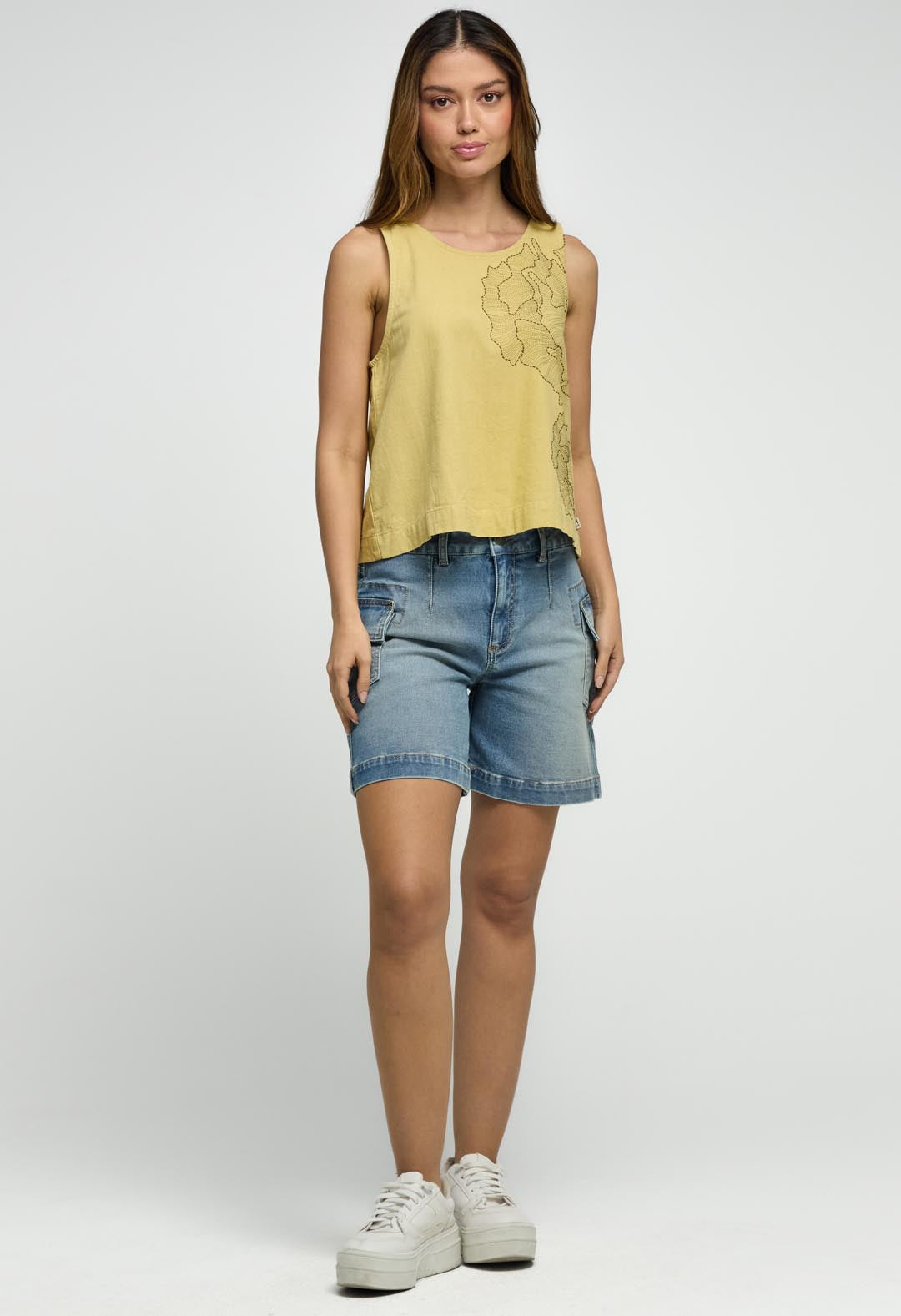 Blusa manga sisa, color pistacho y estampada en frente para mujeres.