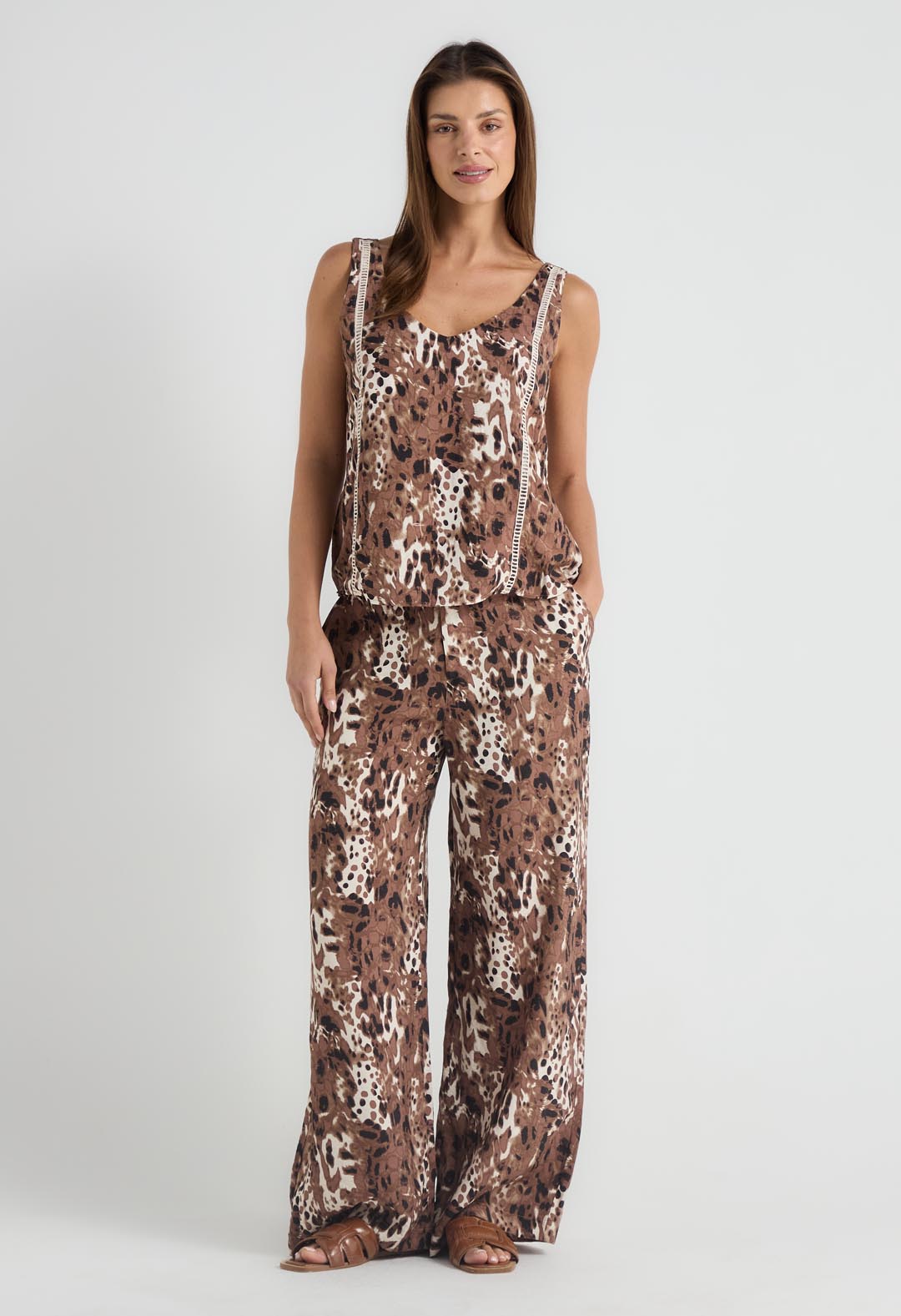 Blusa manga sisa, color taupe y escalerilla para mujeres.