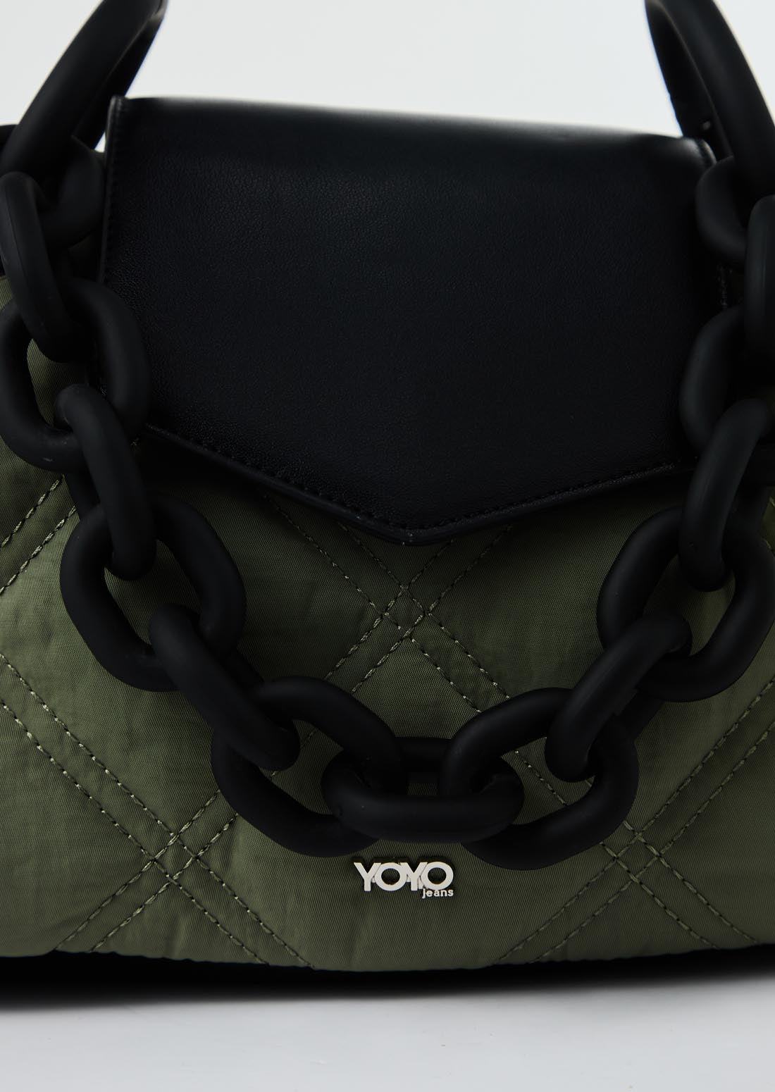 Bolso verde militar con cadena ancha mate
