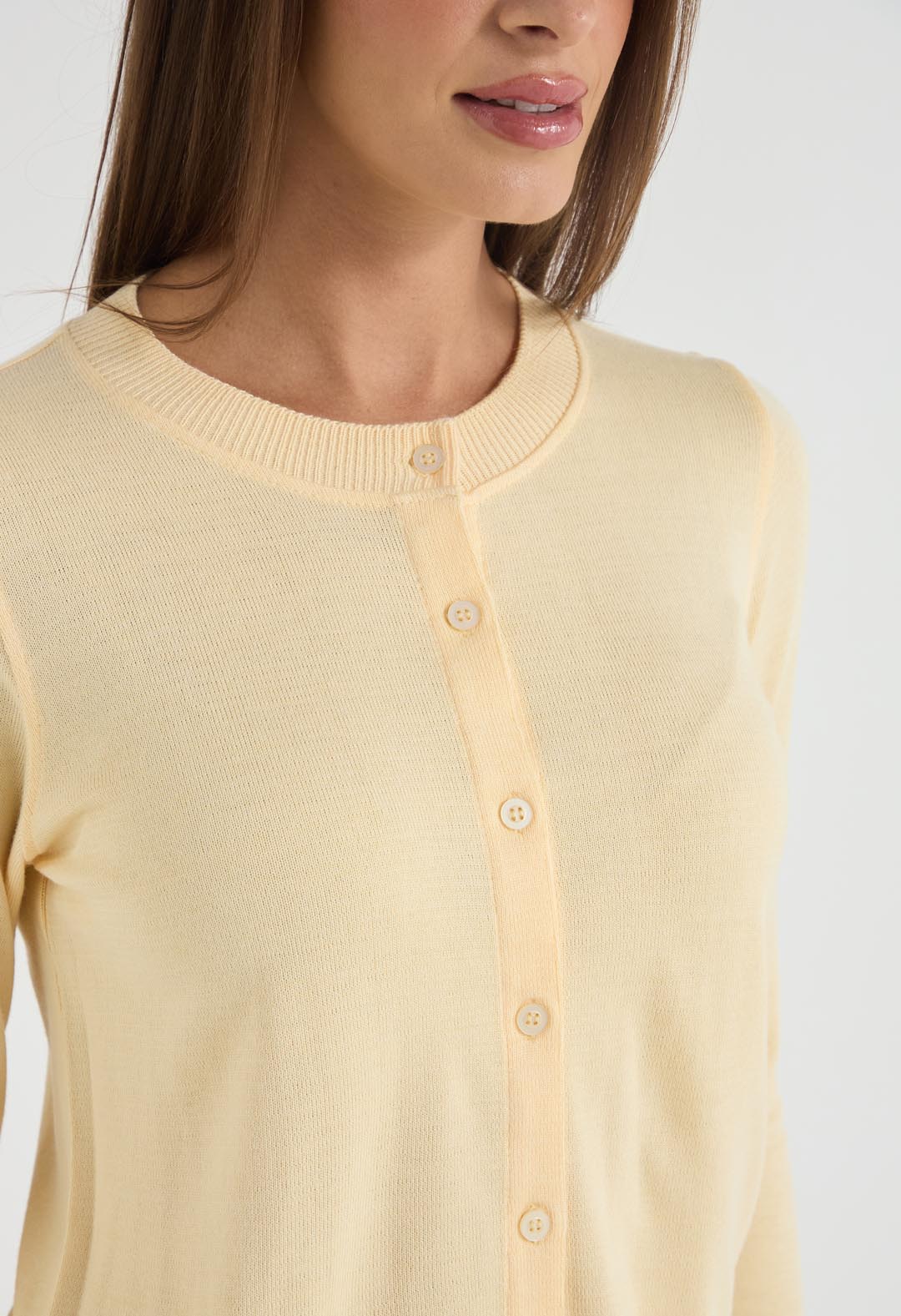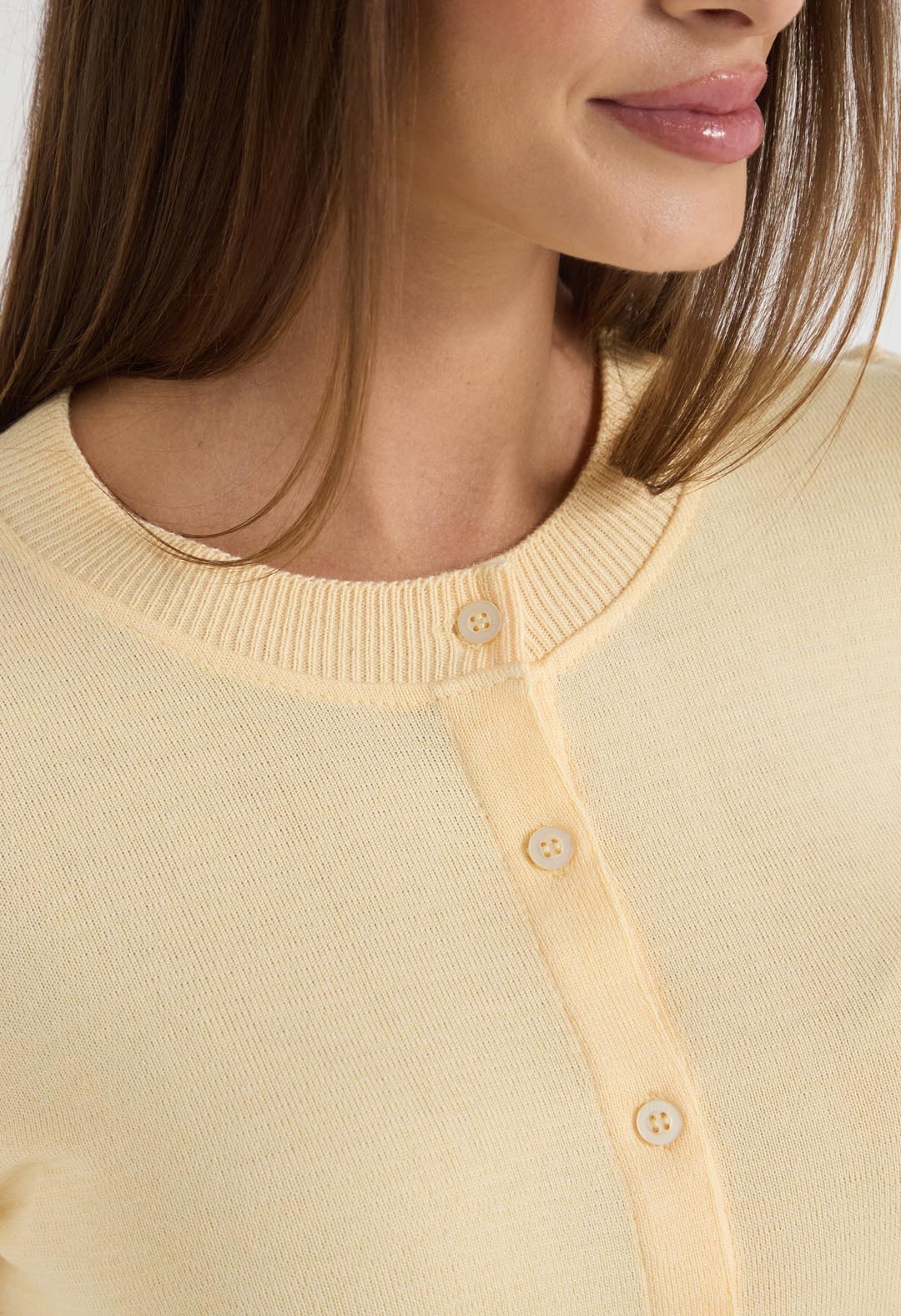 Cárdigan y top amarillo pastel tejido para mujeres.