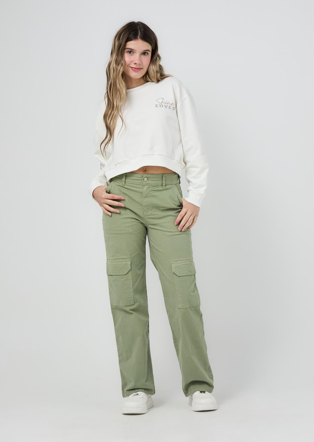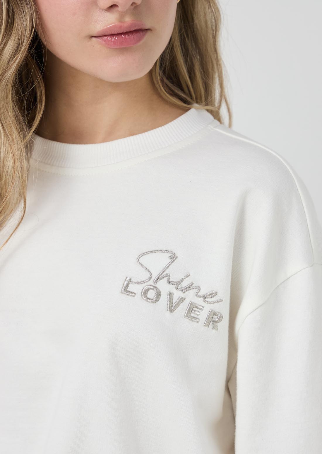 Buzo manga larga, color marfil, con bordado en manga y frente para jóvenes.