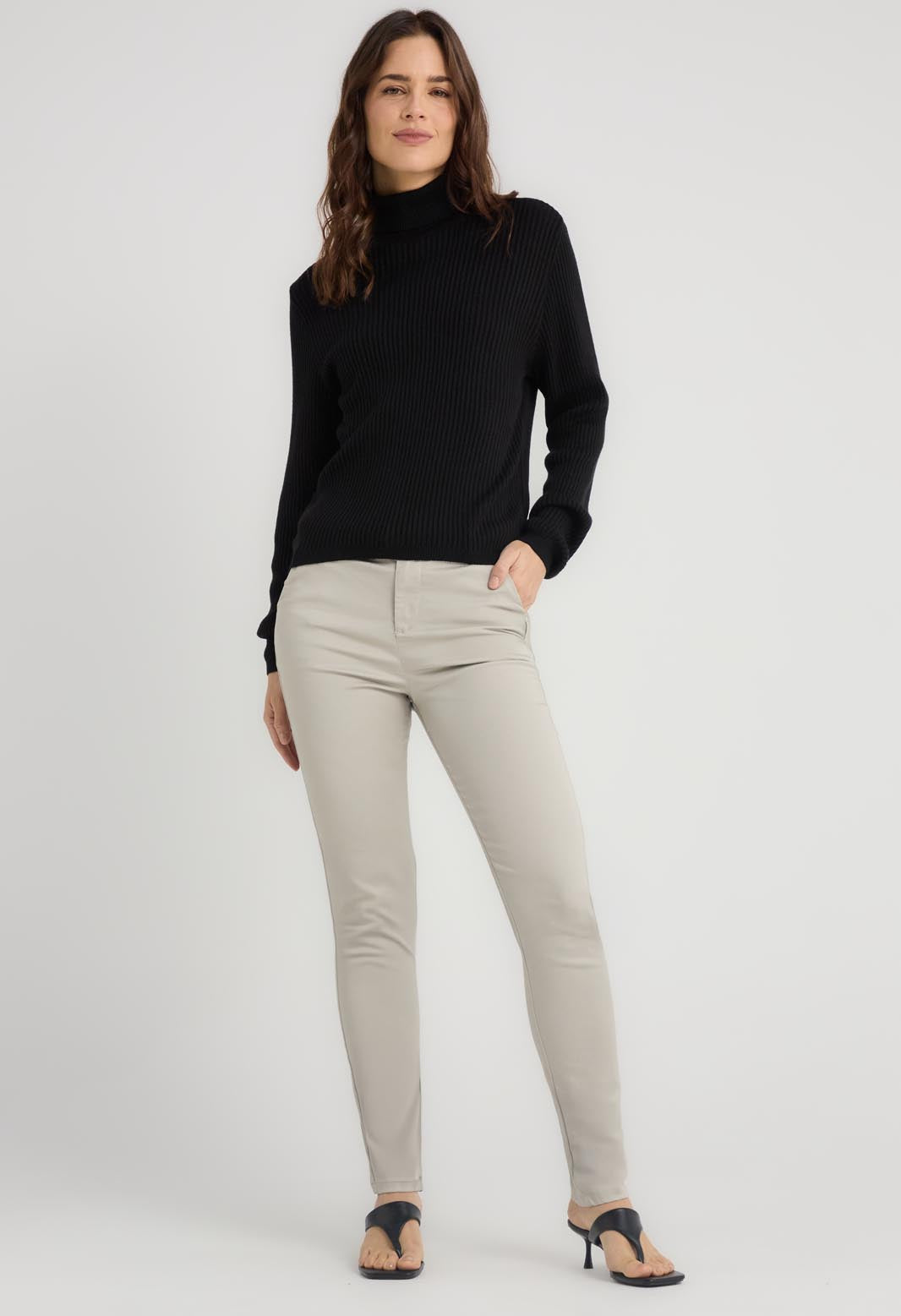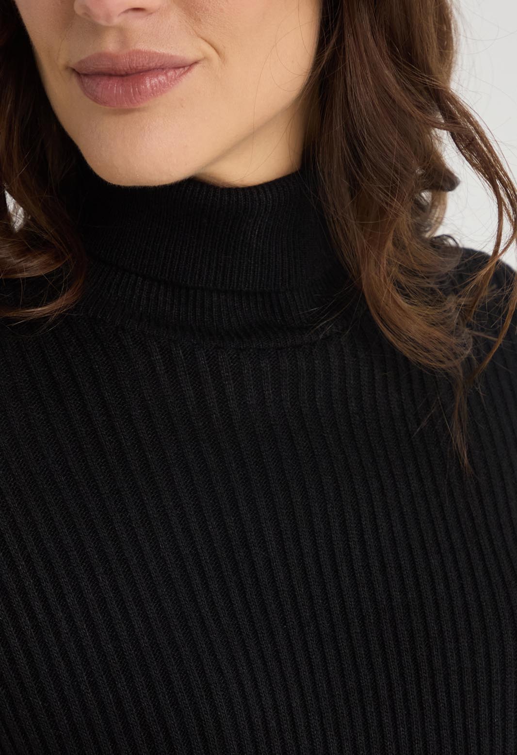 Buzo manga larga, color negro, tejido y cuello tortuga para mujeres.