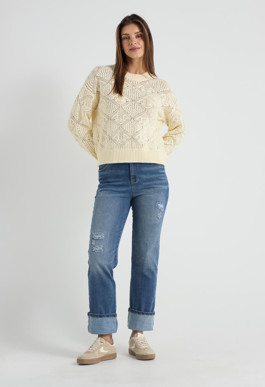 Buzo tejido amarillo claro para mujer