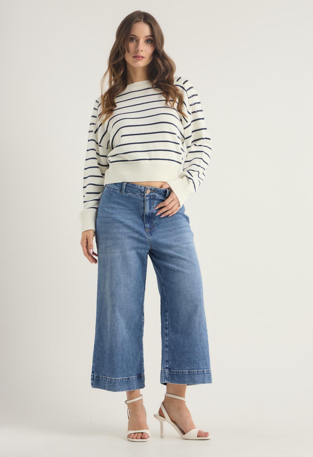 Buzo tejido, manga larga, color marfil y con lentejuelas en hombro para mujer.