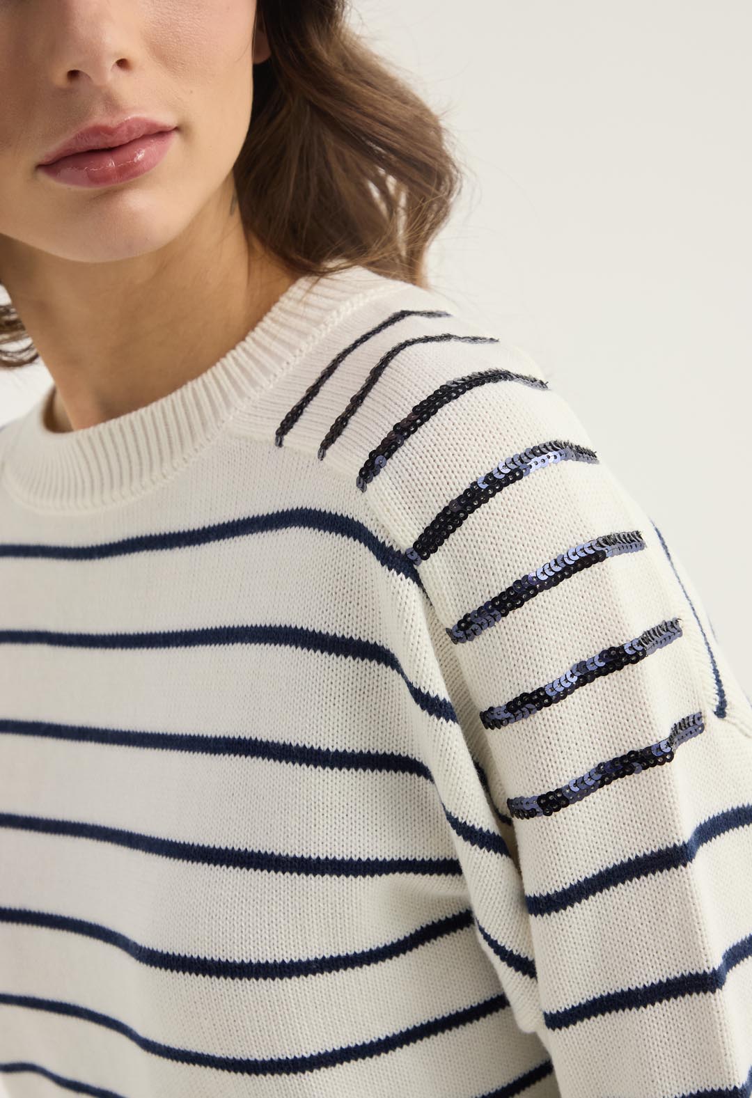 Buzo tejido marfil con lentejuelas en hombro para mujer