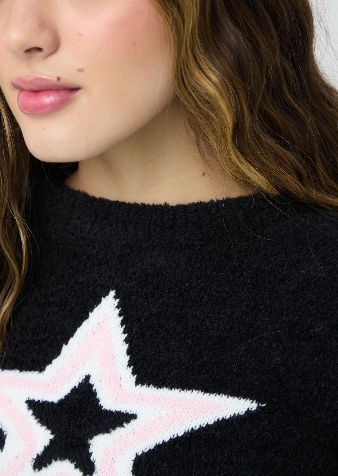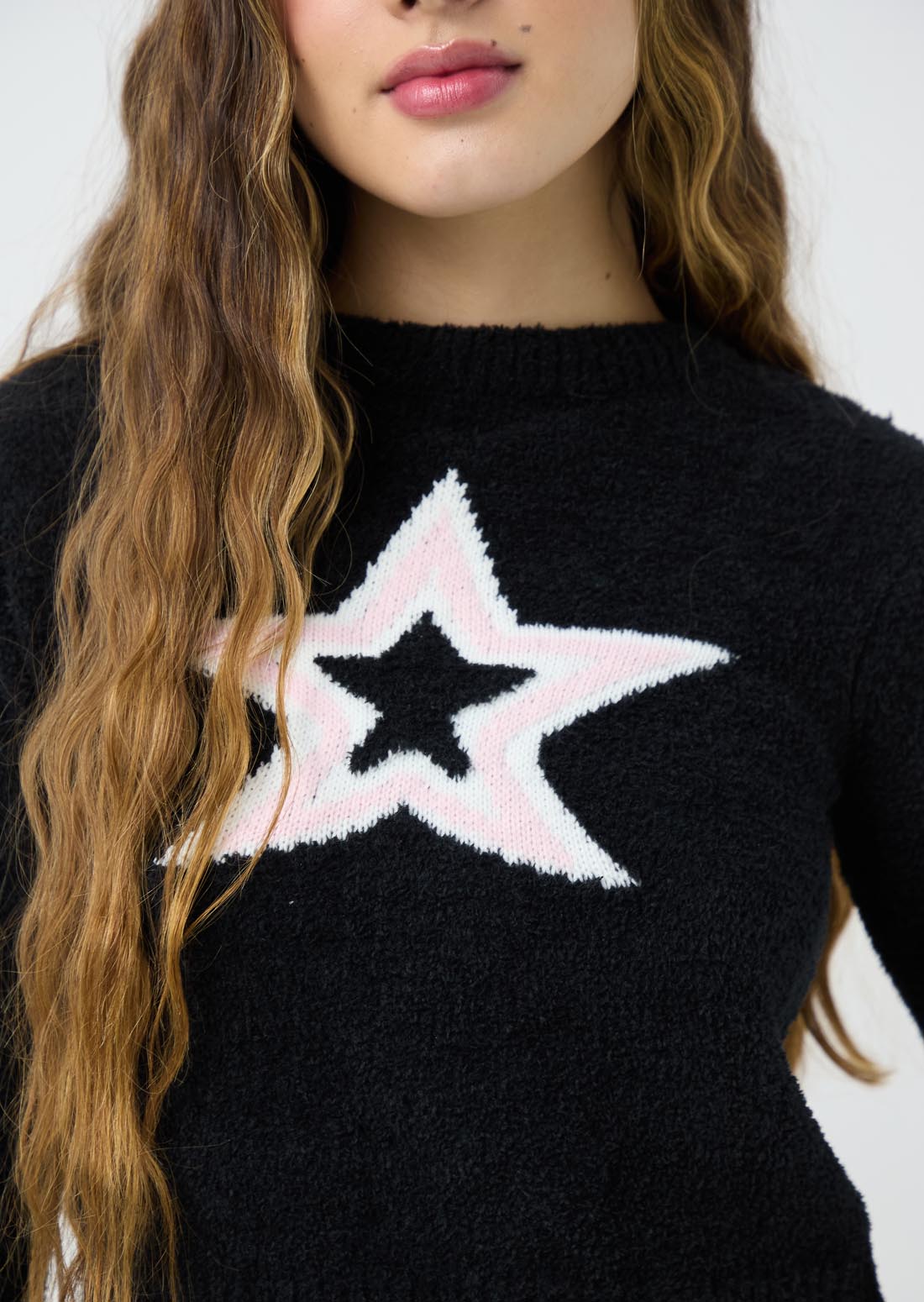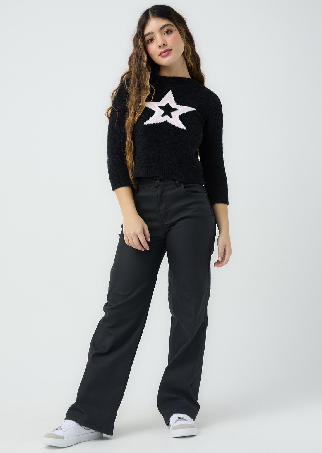 Buzo tejido, manga larga, color negro y con estrella en frente para jóvenes.