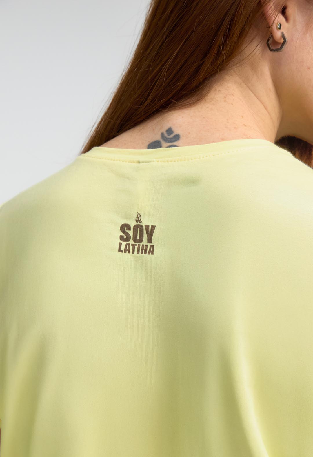 Camiseta amarillo pastel con estampado en frente y espalda para mujeres