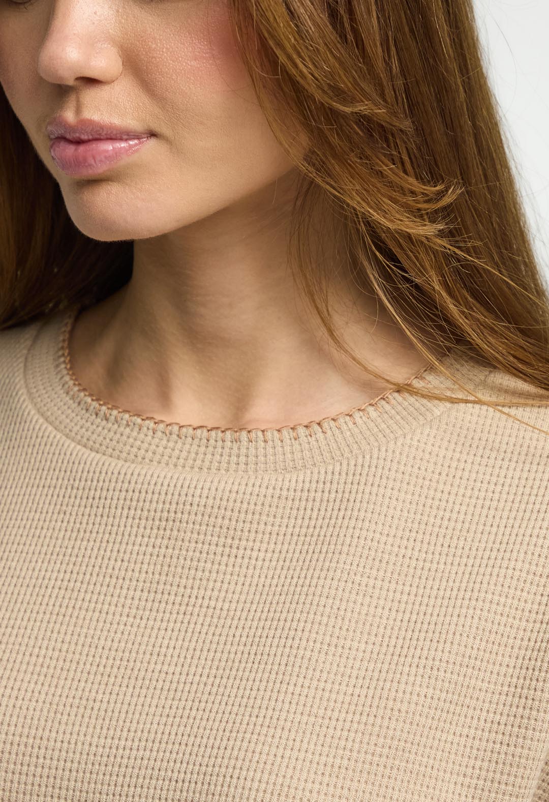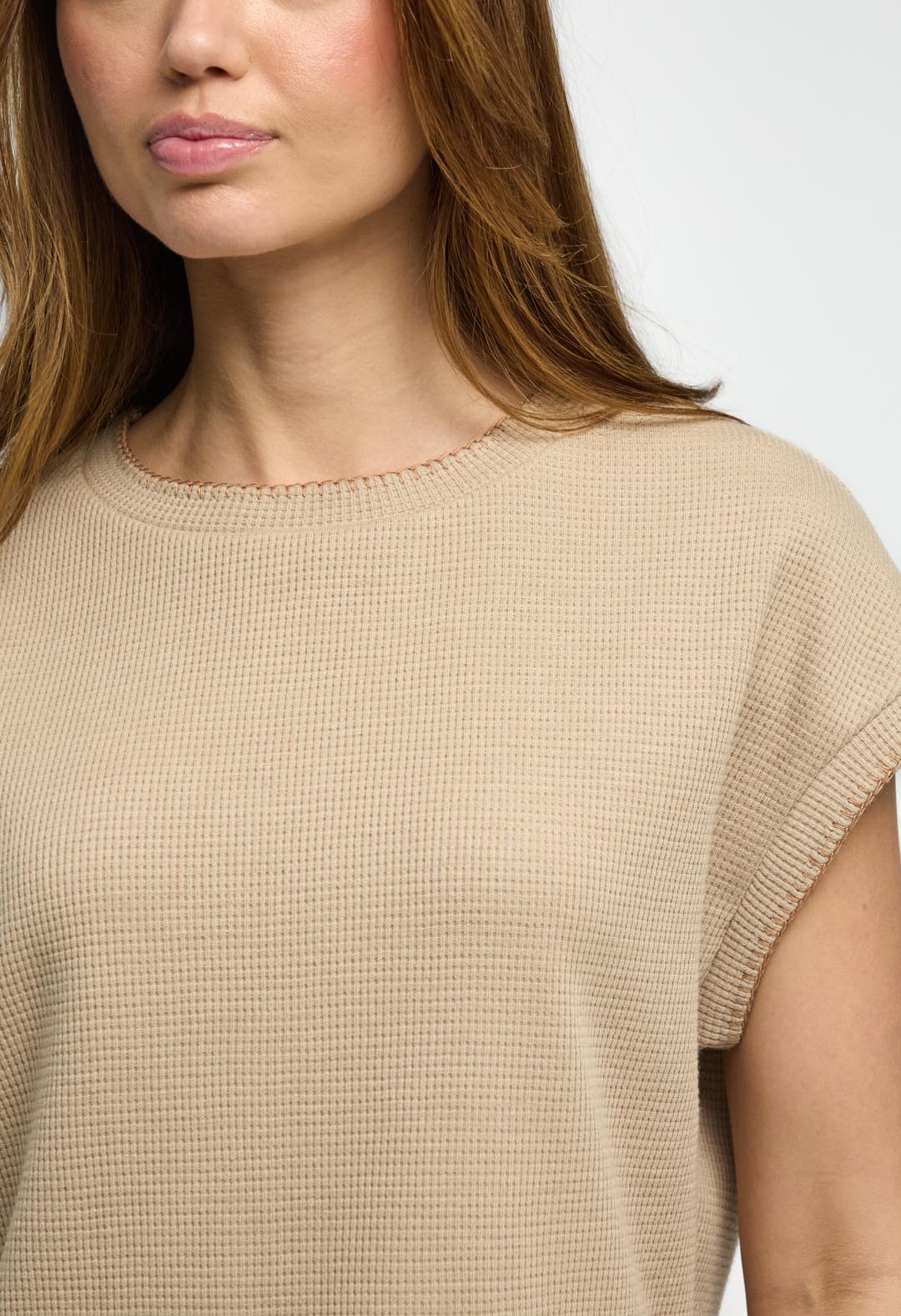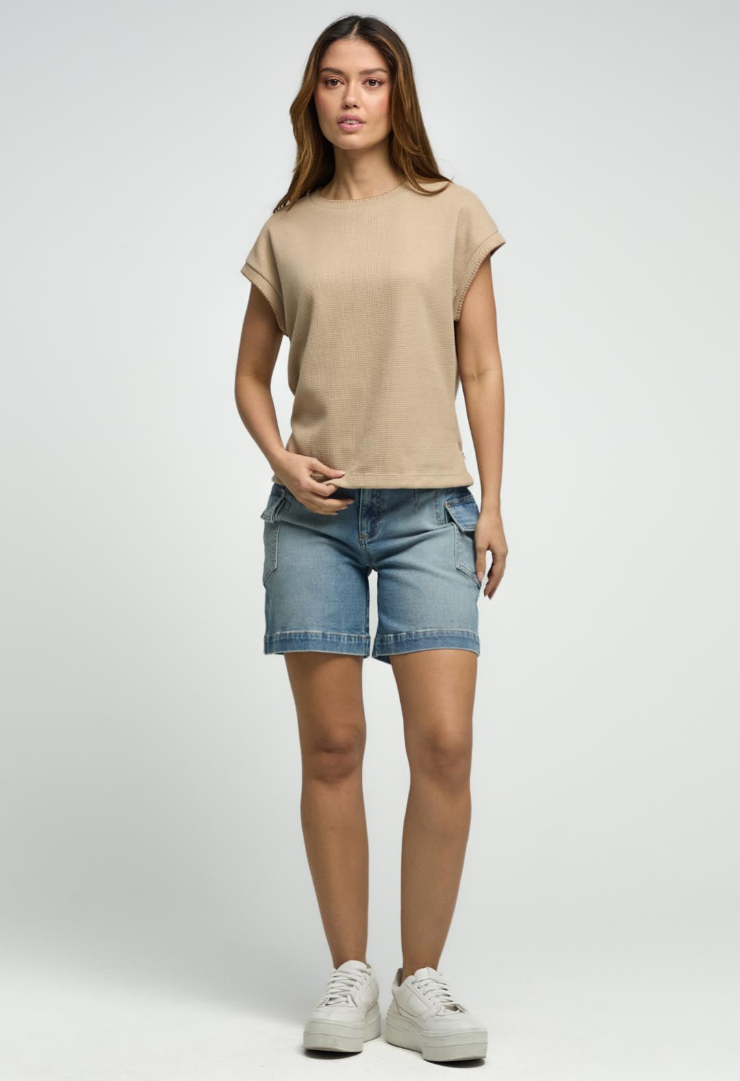 Camiseta manga corta, color arena, tela galleta y fondo entero para mujeres.