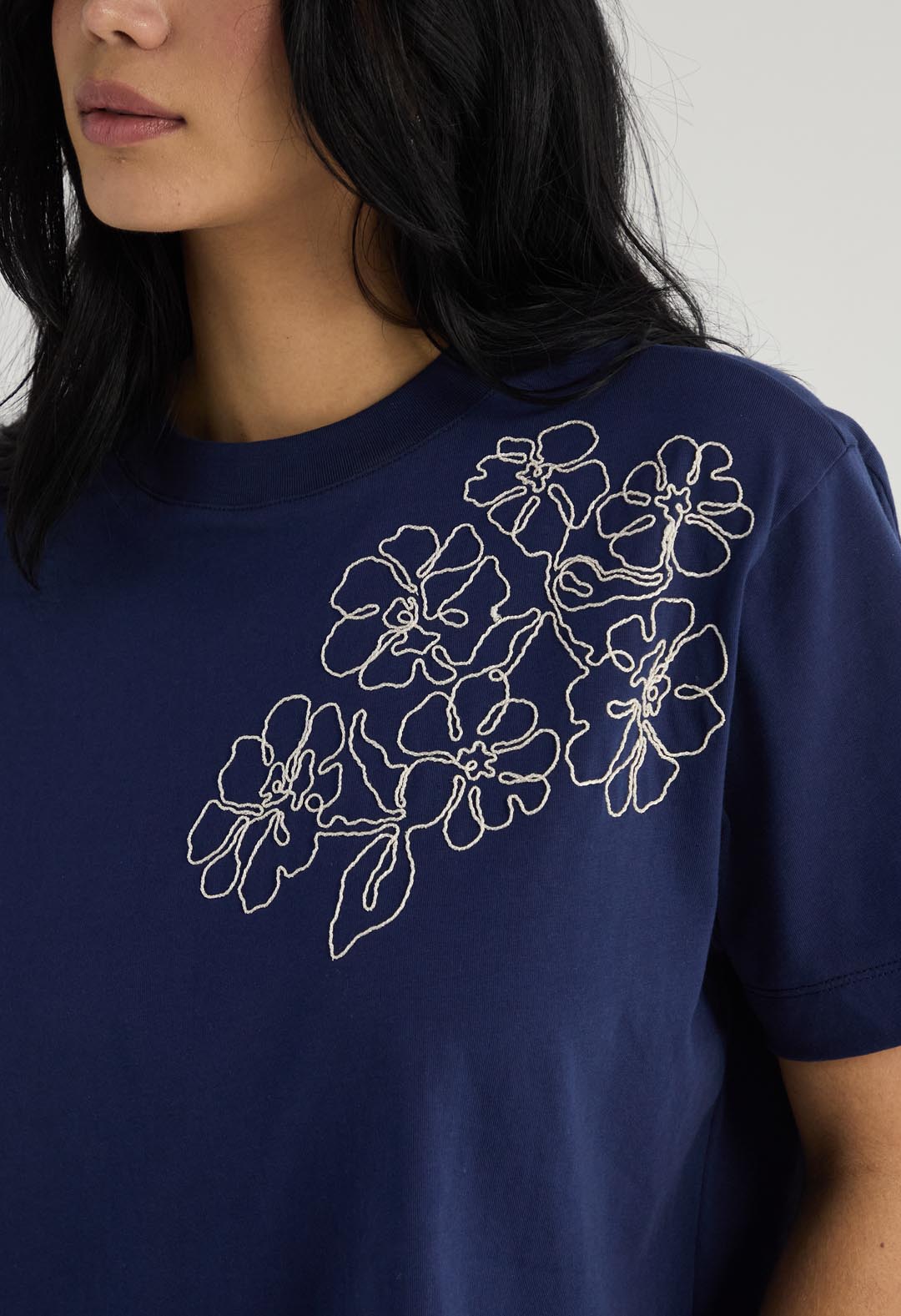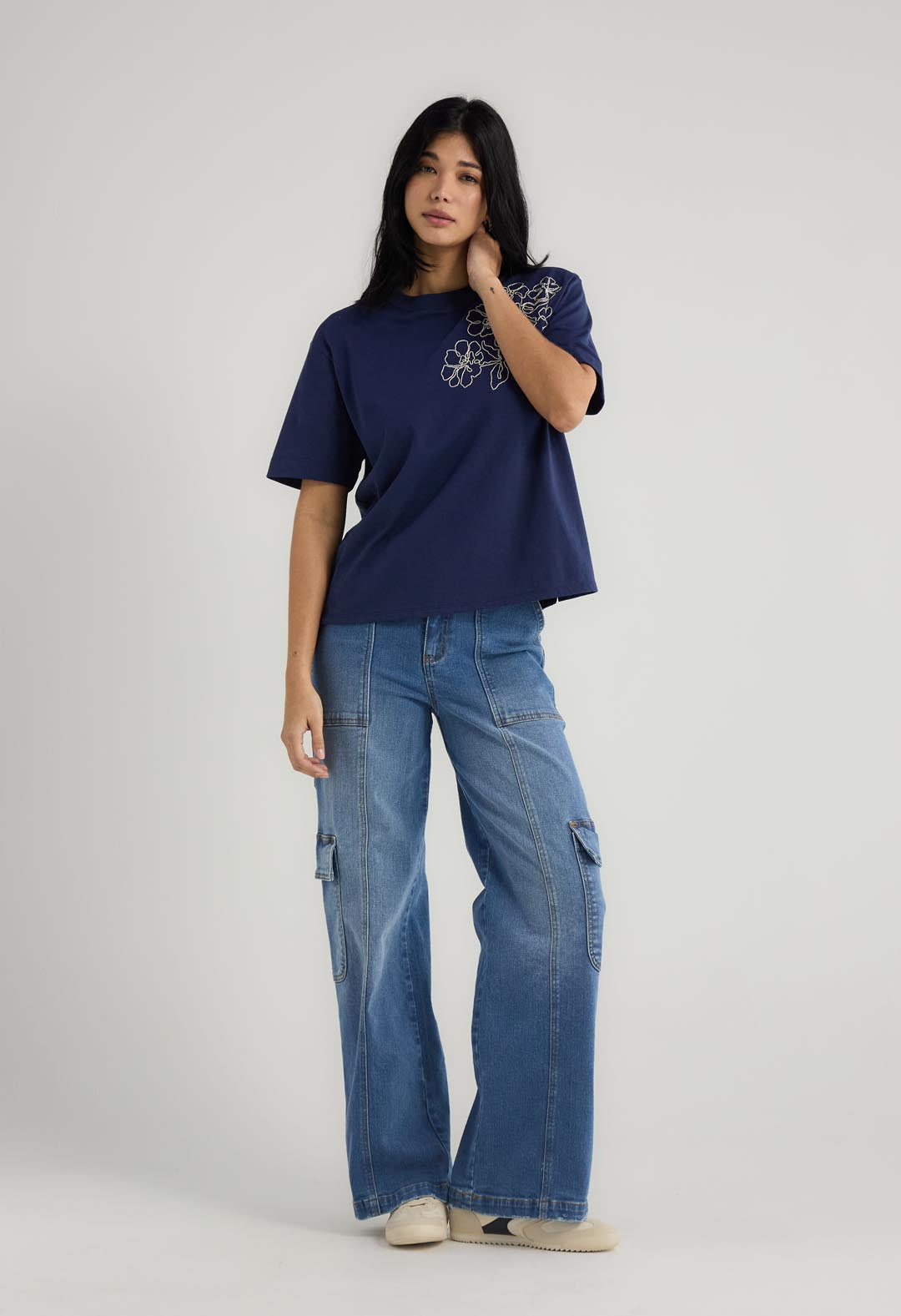 Camiseta manga corta, color azul navy y con bordado para mujer.