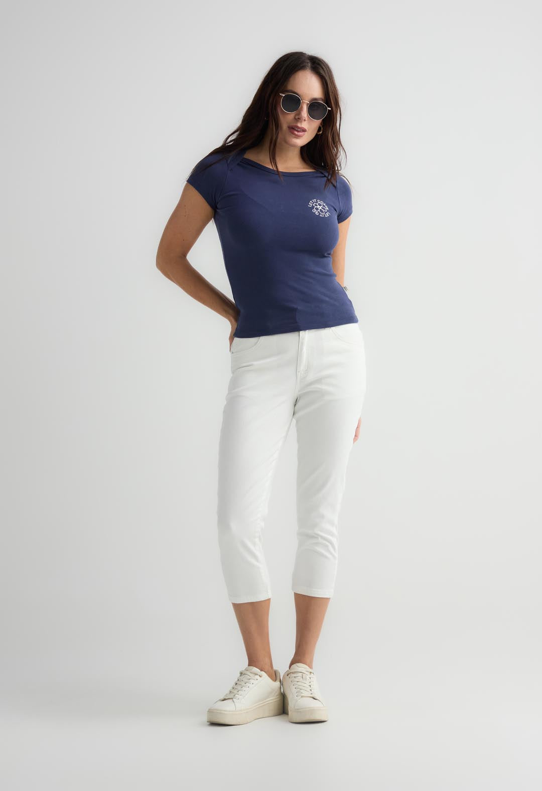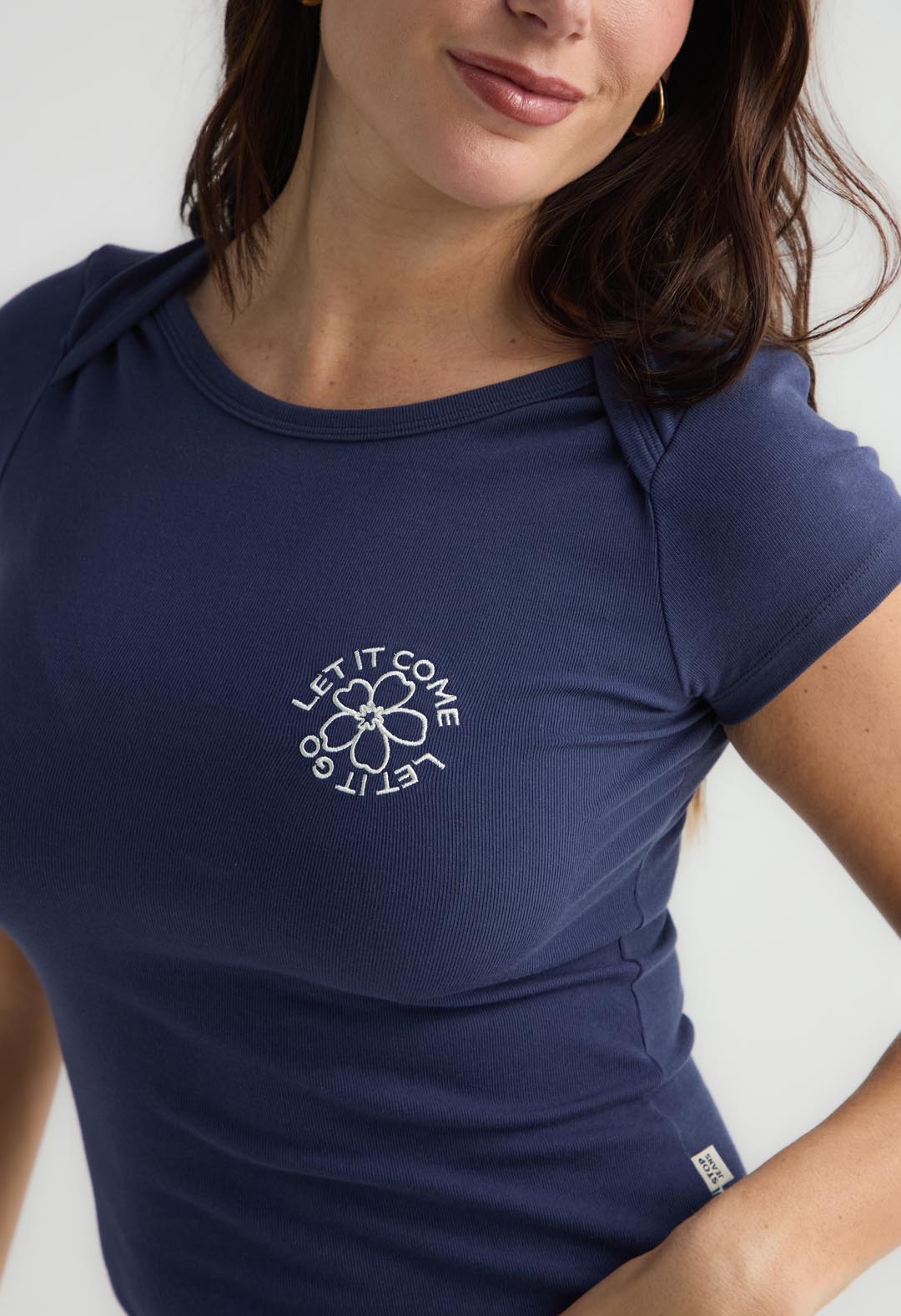 Camiseta azul navy de manga corta con estampado frontal para mujer