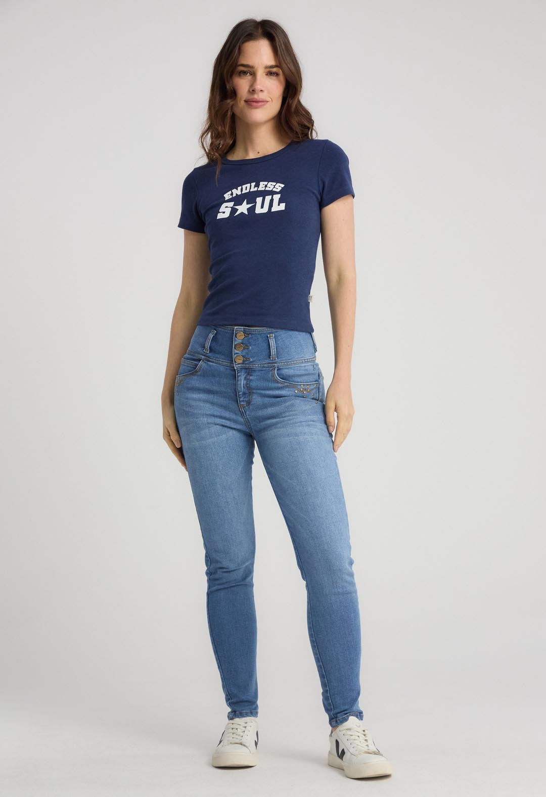 Camiseta azul navy estampado para mujer.