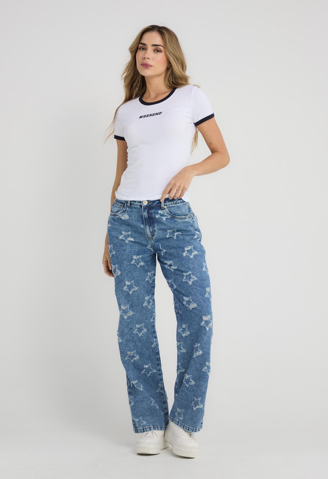 Camiseta manga corta, color blanco y piezas en contraste para mujeres.