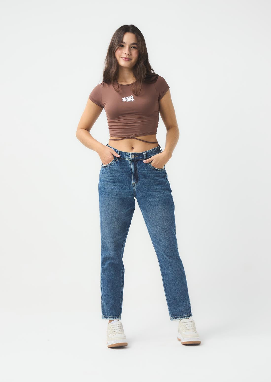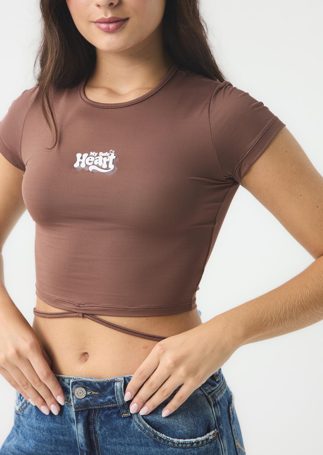 Camiseta chocolate con amarre en cintura para jóvenes