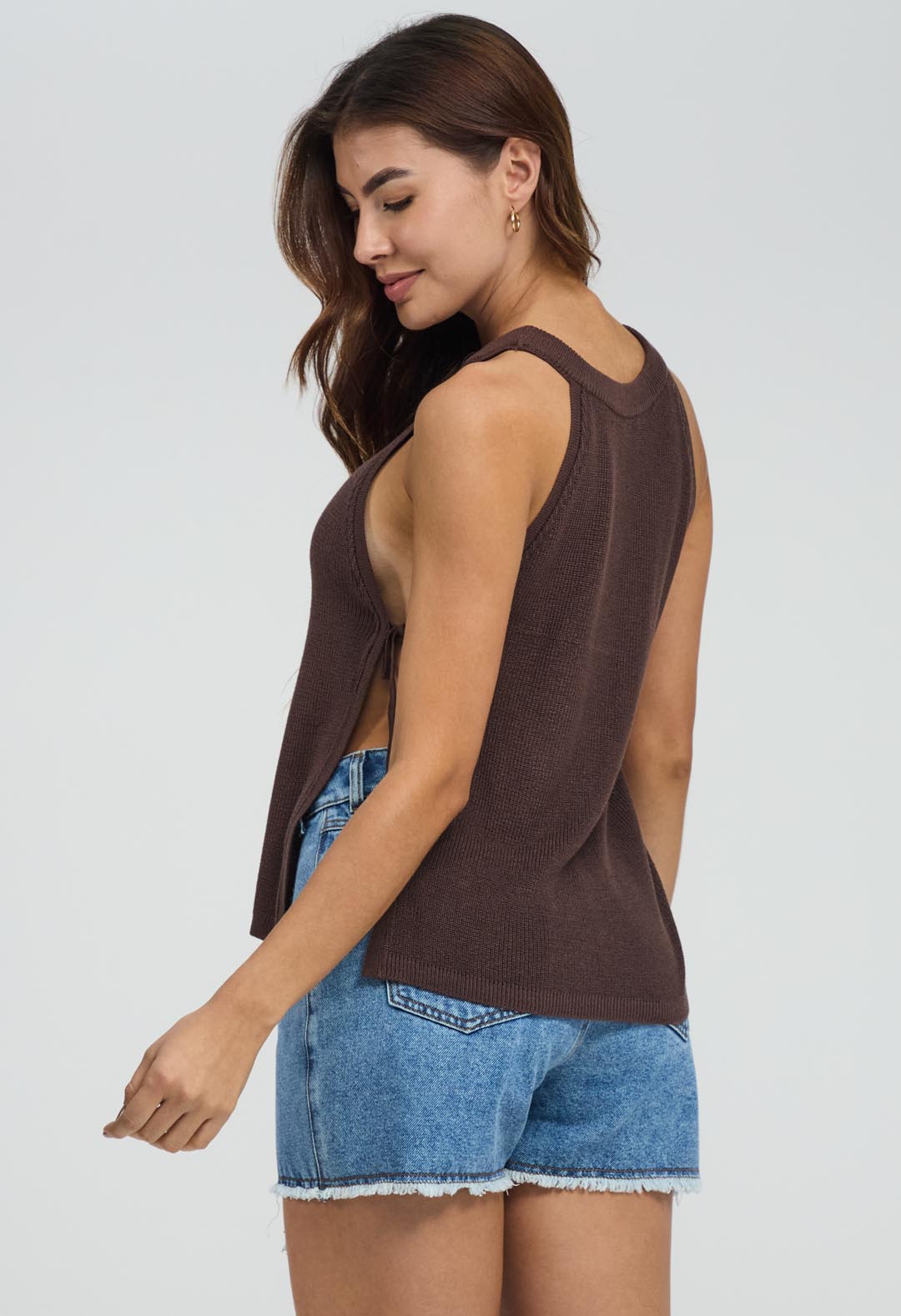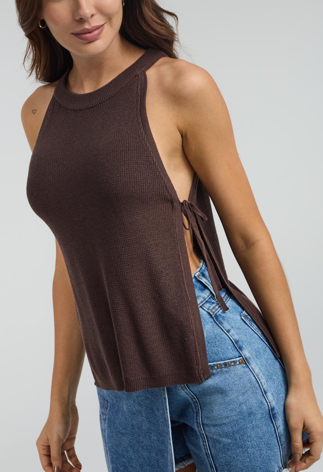 Camiseta manga sisa, color chocolate y tejido para mujeres.