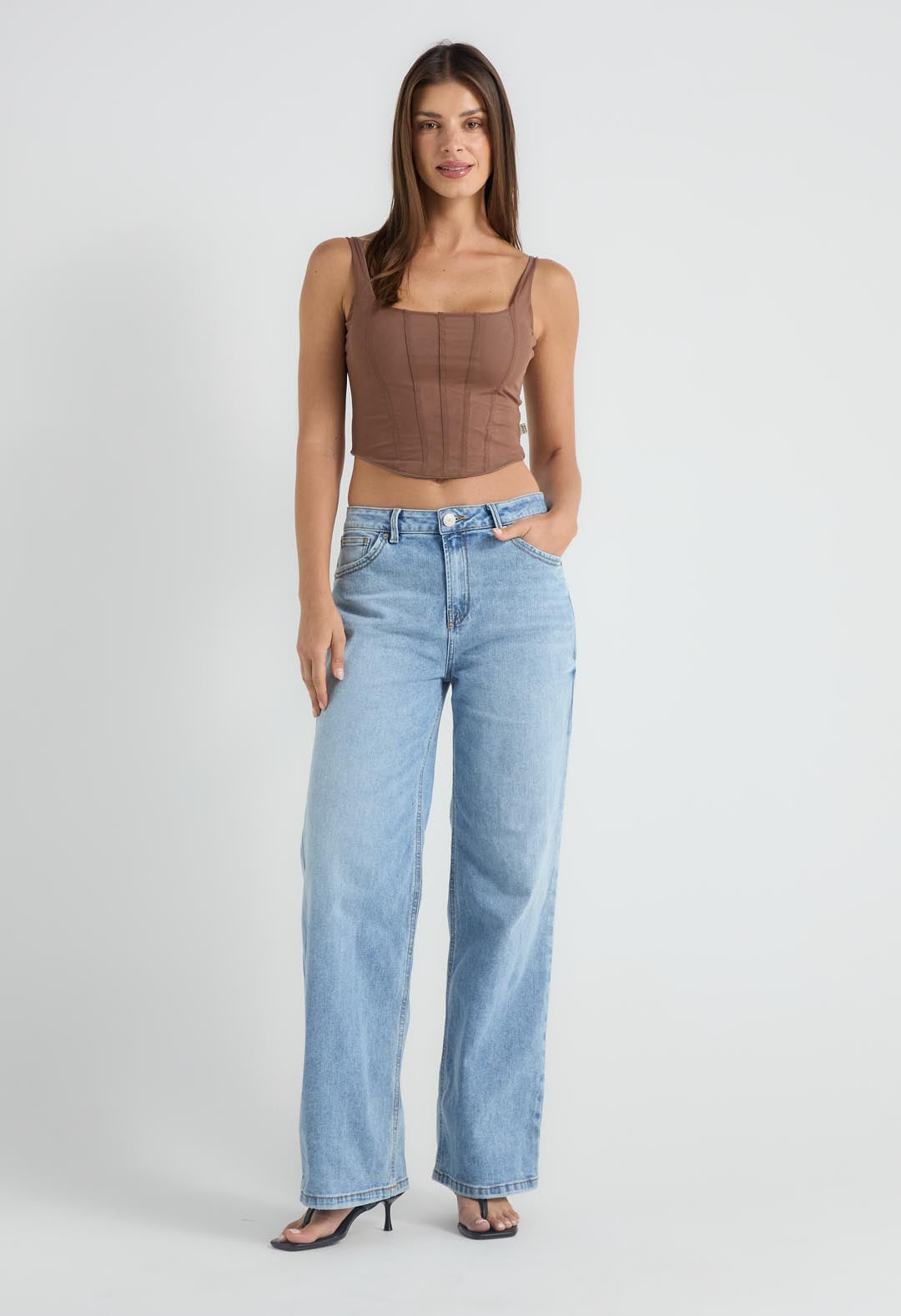 Camiseta manga sisa, color chocolate, tipo corsé, en malla y largo crop para mujer.