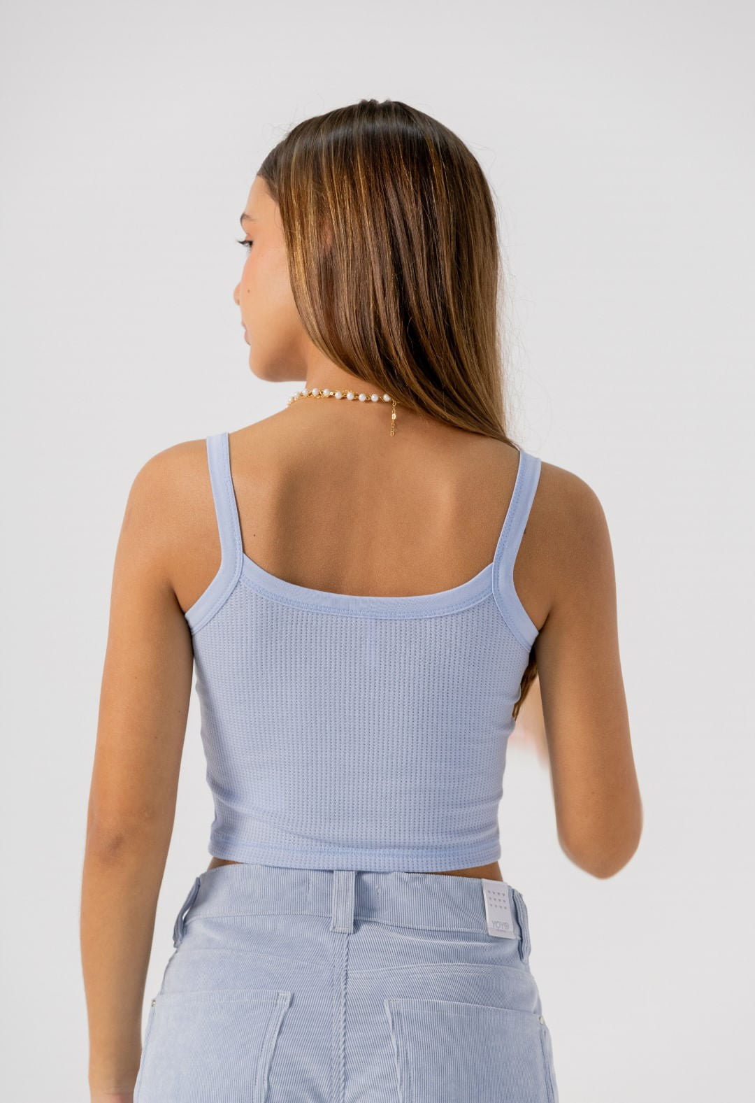 Camiseta de tiras, color azul claro y fondo entero para jóvenes.