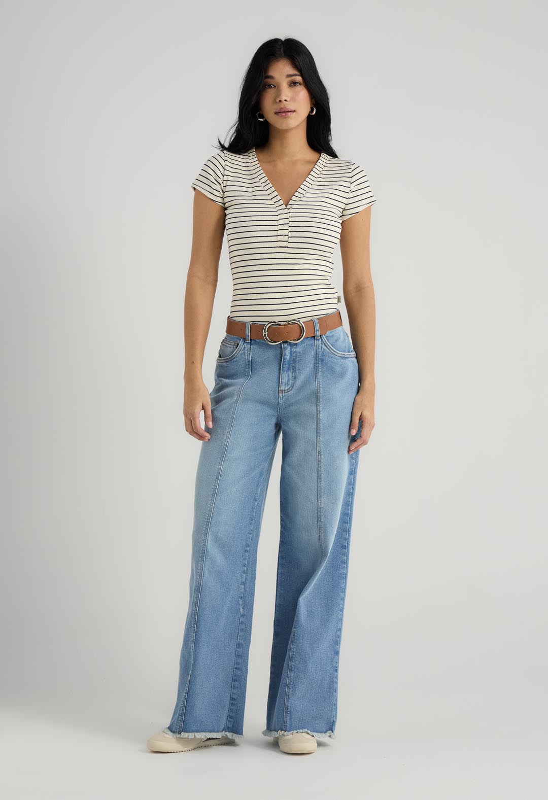 Camiseta manga corta, color azul navy, en rib y con perilla para mujer.