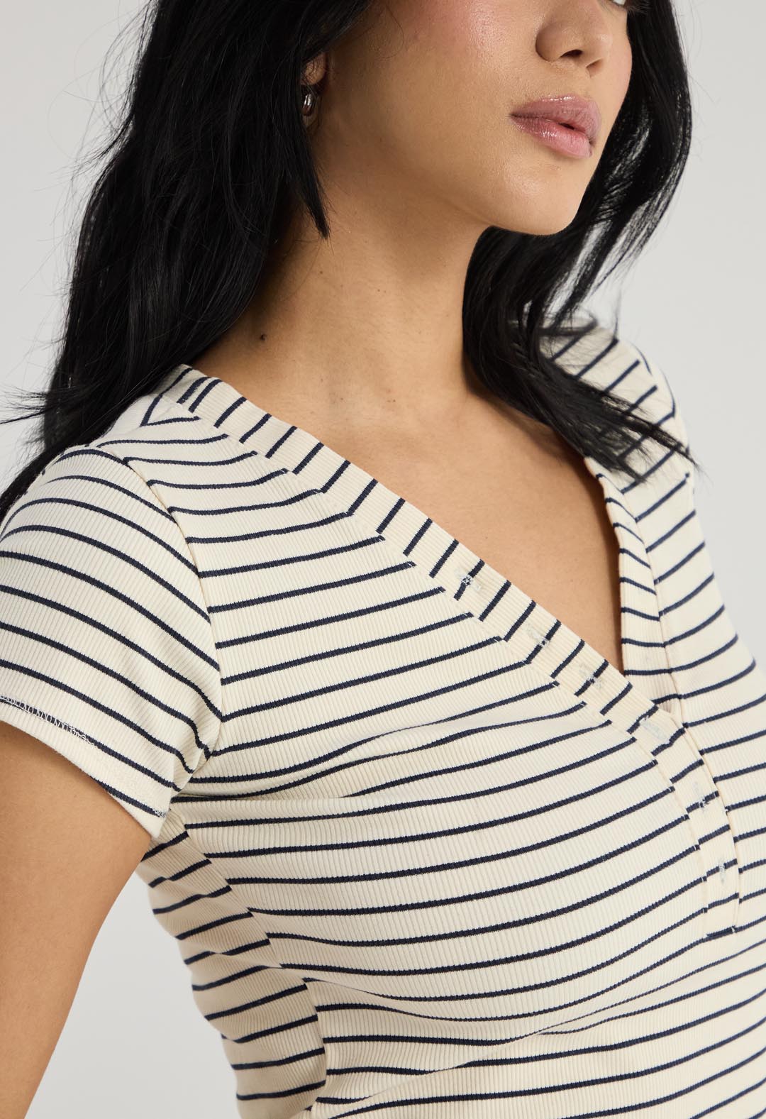 Camiseta en rib azul navy con perilla para mujer