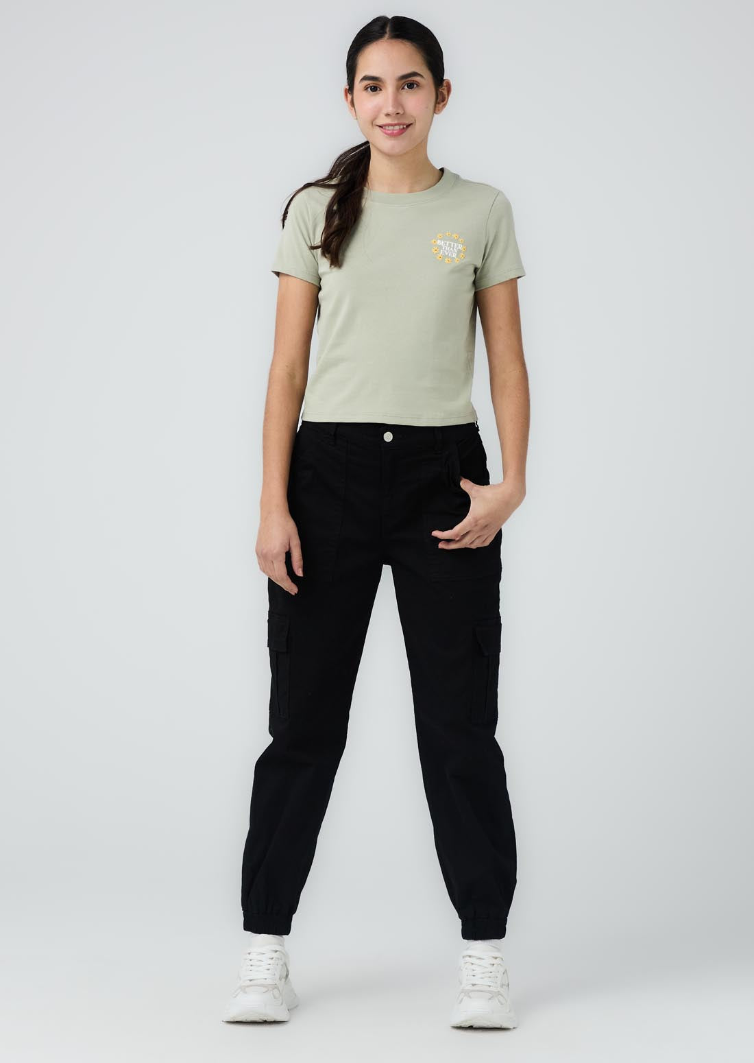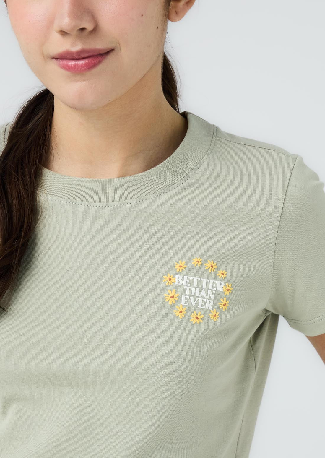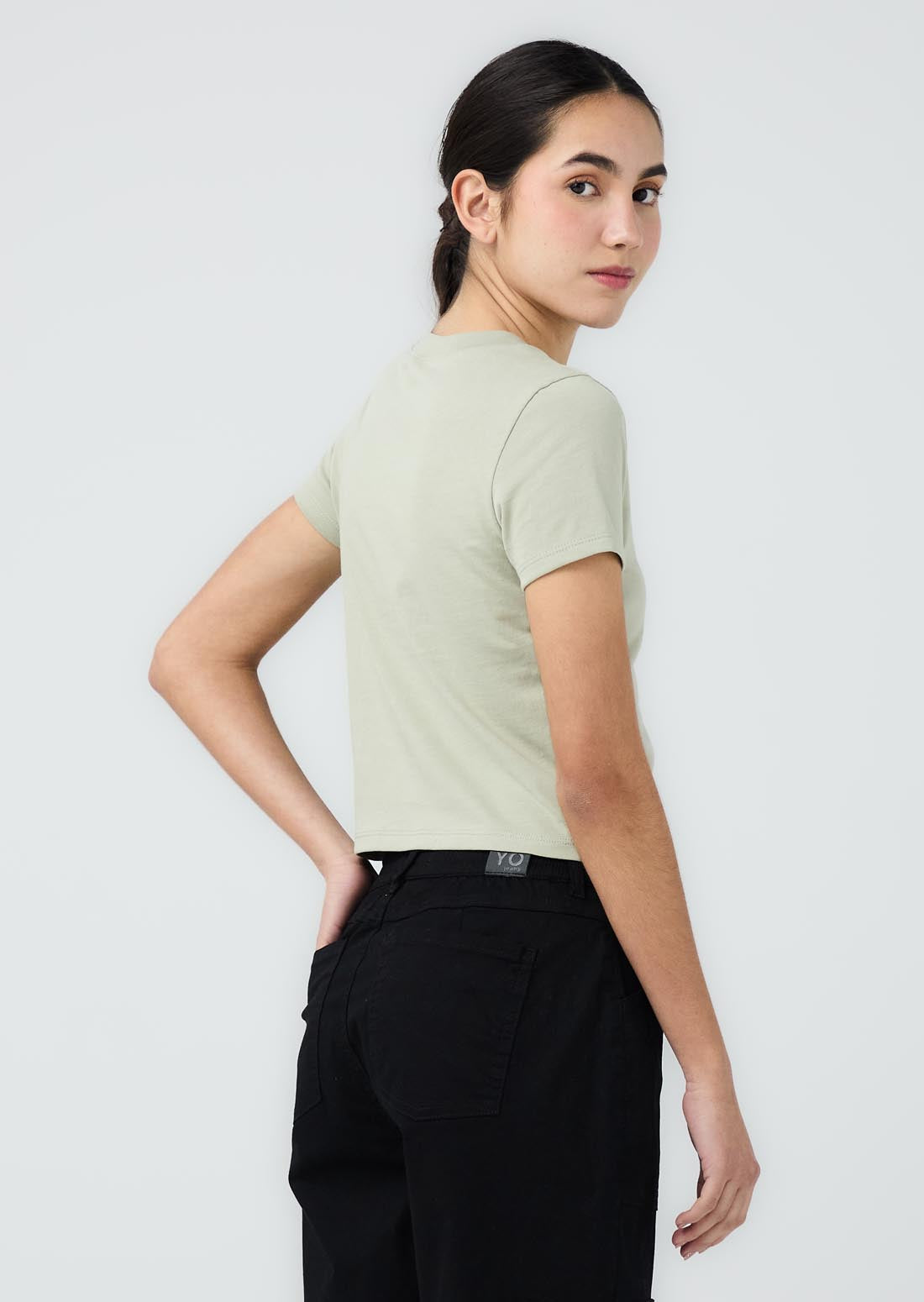 Camiseta manga corta, color eucalipto y estampado punto corazón para jóvenes.