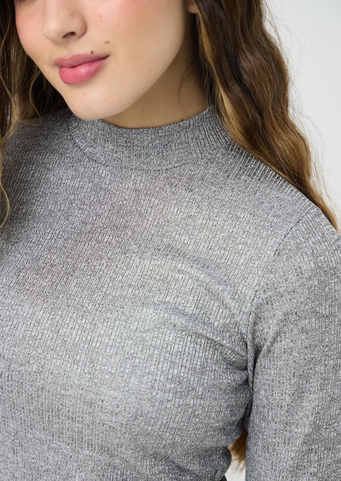 Camiseta manga larga, color gris, cuello alto y fondo entero para jóvenes.
