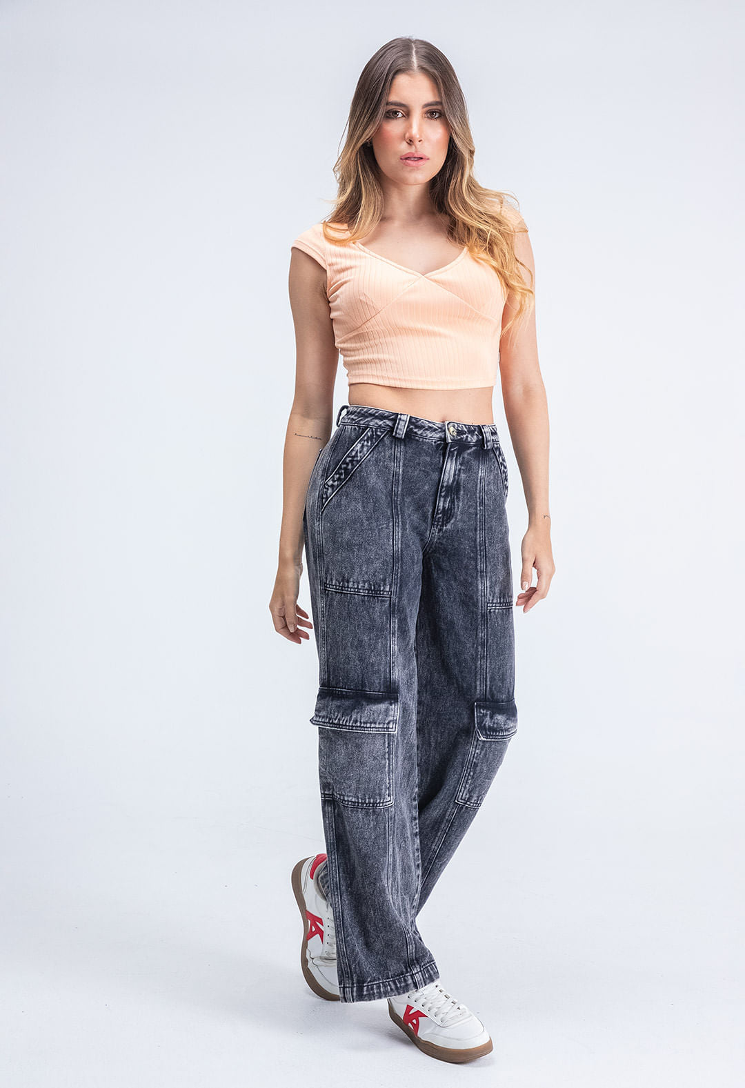 Camiseta manga sisa, cortes en pecho, en rib, largo crop