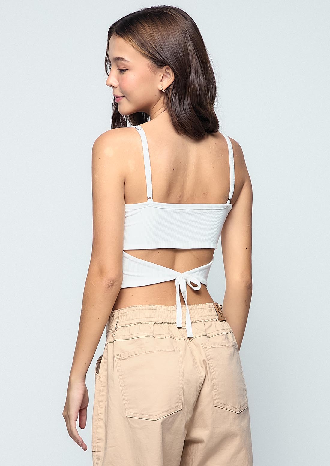 Camiseta de tiras, color marfil, fondo entero y amarre en espalda para jóvenes.