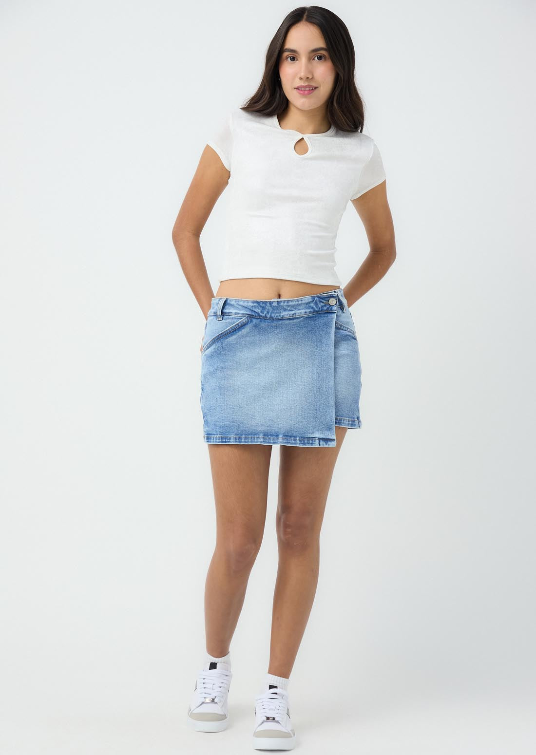 Camiseta marfil con abertura en frente para jóvenes